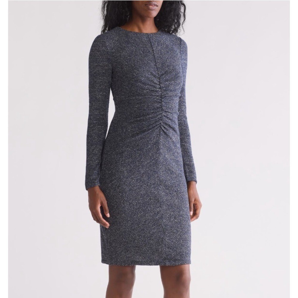 Vince Camuto Metallic Knit Long Sleeve Dress, Party, Work Navy, Size 8, NWT