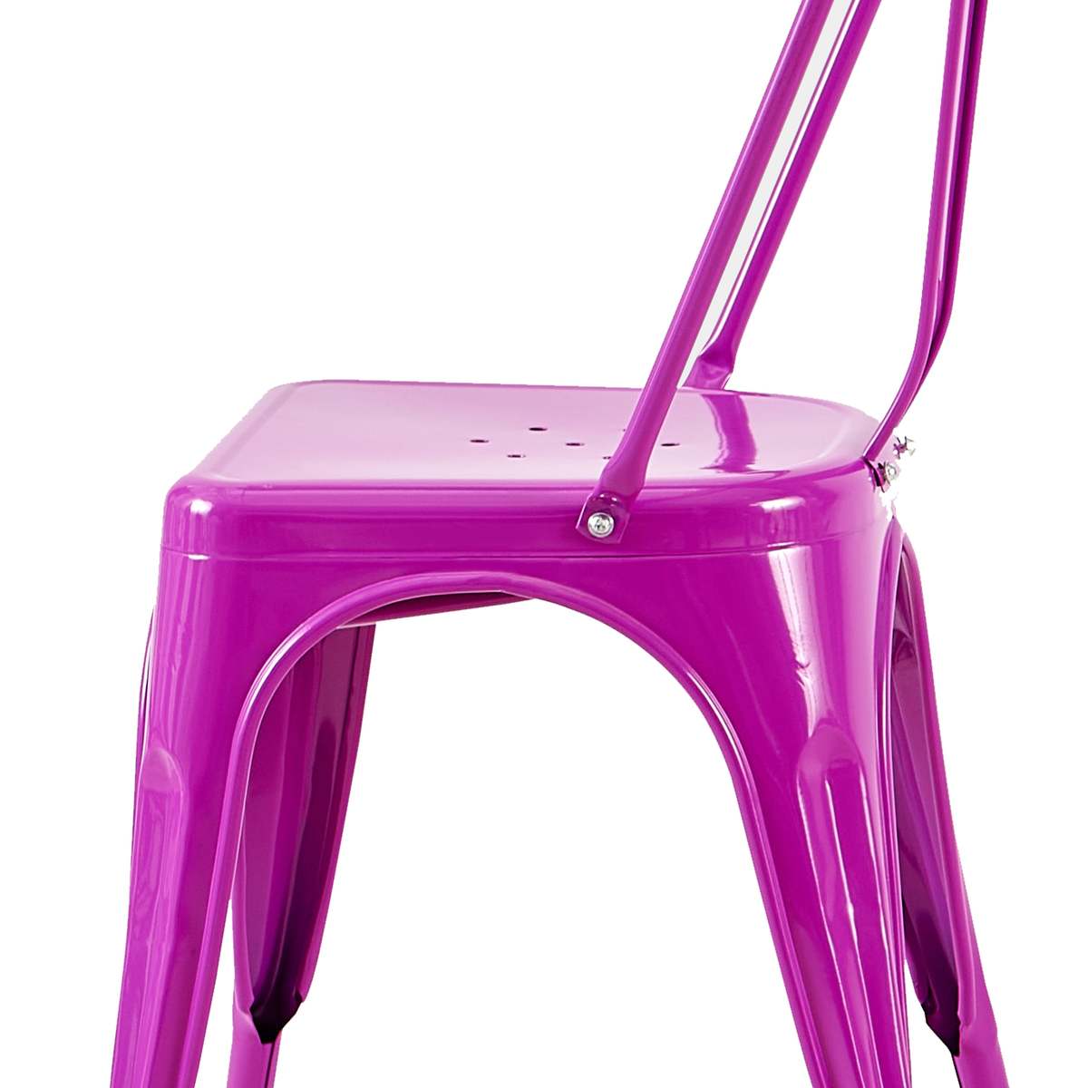 What's Included: Set of 2 Modern High Gloss Purple Metal Dining Room Kitchen Bar Chairs.