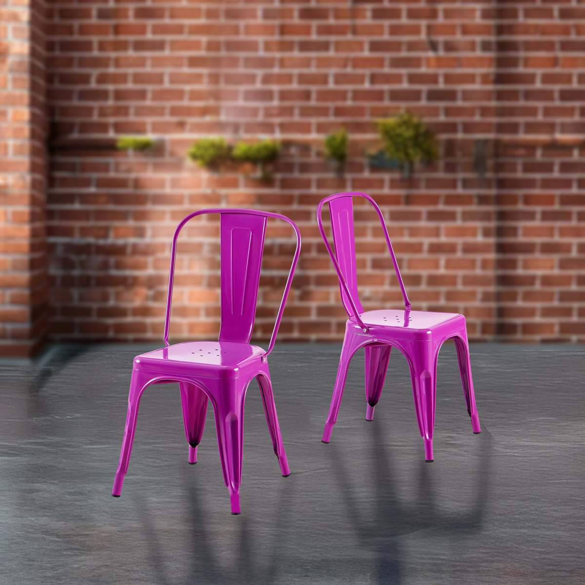 Set of 2 Purple High Gloss Industrial Metal Dining Chairs 18" Stackable