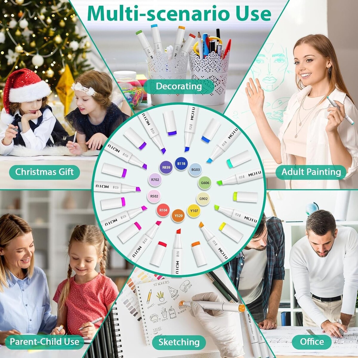 Alcohol Markers, 100 Colors Dual Tips, Permanent Art Marker Set for Adults Ki...