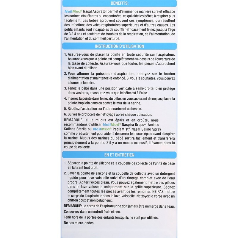 NeilMed Battery Operated Nasal Aspirator Gentle, Steady Suction Clears Stuffy Noses Fast Light Feature Soft, Flexible Silicone Tips BPA Latex Free Batteries Included Easy to Clean Ideal for Infants and Toddlers with Infection