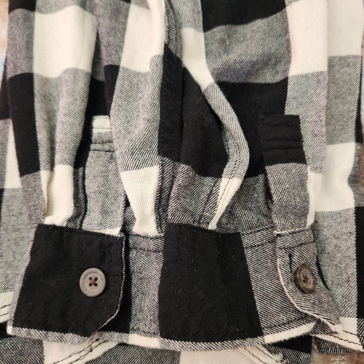 Men Roebuck black & white plaid front pockets long sleeve button medium shirt