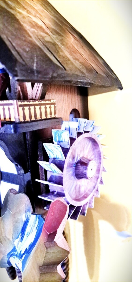 waterwheel turns. The clock overall measurements is about 12 inches high by 10