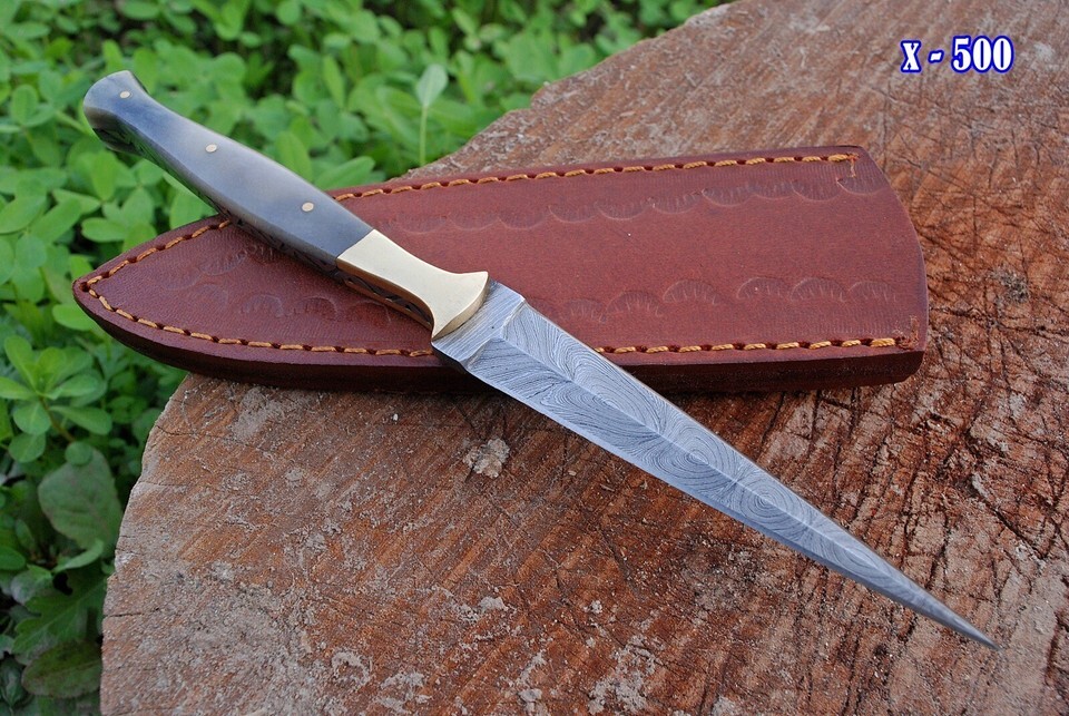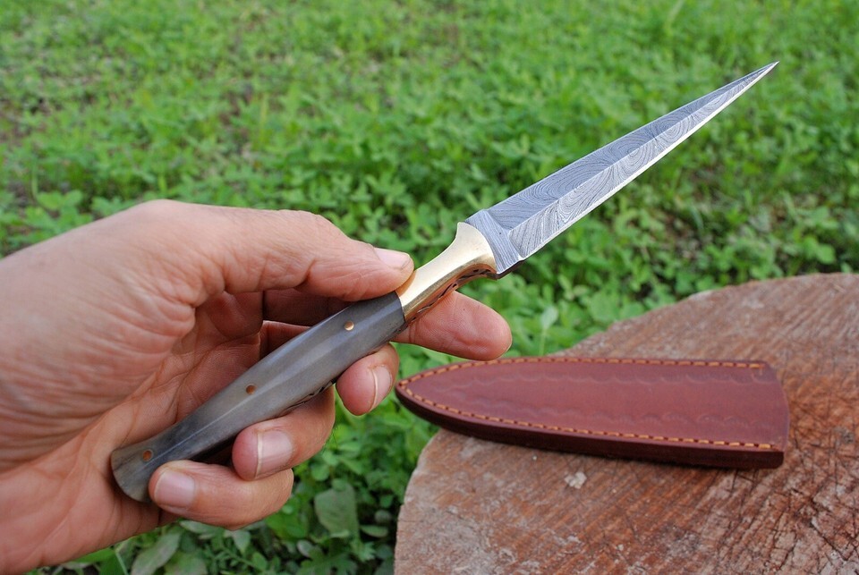 FORGED DAMASCUS STEEL DOUBLE EDGE BLADE THROWING BOOT DAGGER HUNTING CAMPING KNIFE