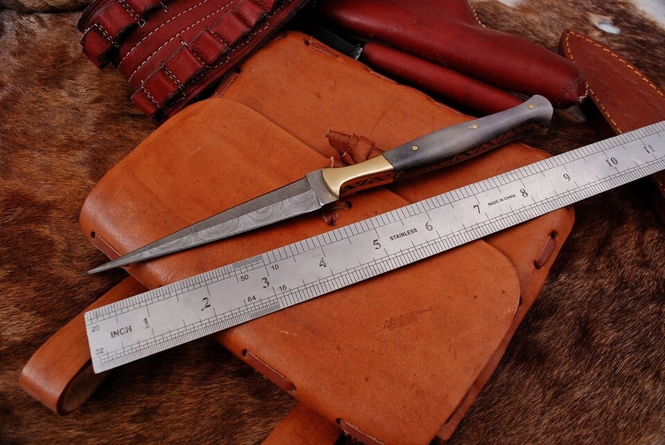 Blade of this knife has a nice file work and is made of 512 layers of 4340 stainless steel and 1075 high carbon steel and hardness 55-58 HRC . This robust knife is lab tested under intense conditions, the balance and shape of this knife ensures perfect grip.