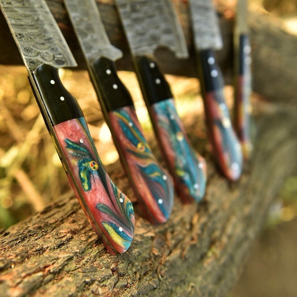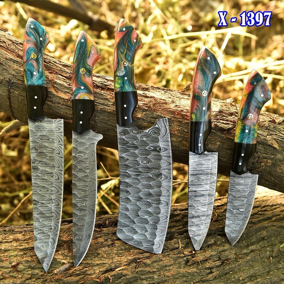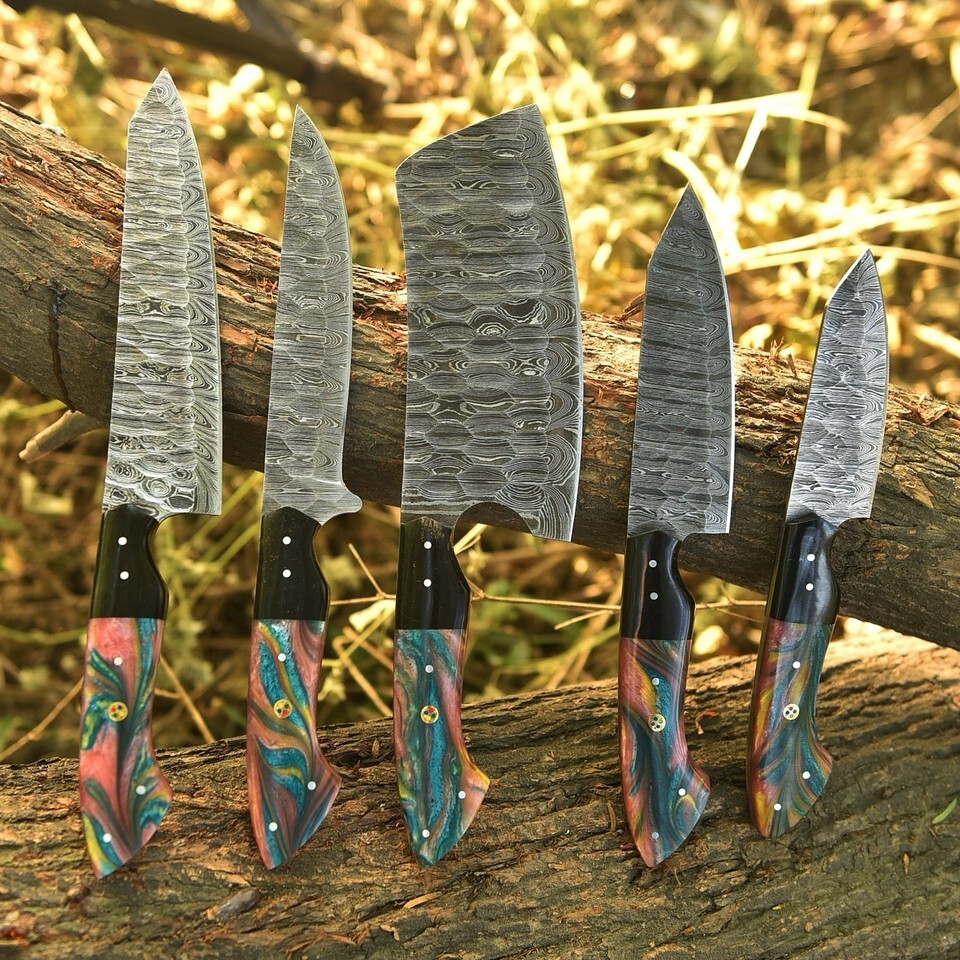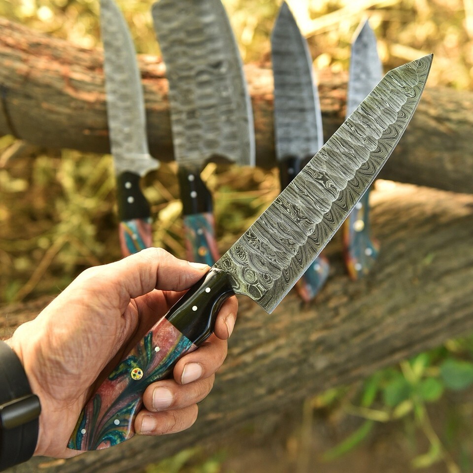 RARE HANDMADE DAMASCUS STEEL CHEF KNIFE SET KITCHEN KNIVES CHEF SET CUTLARY