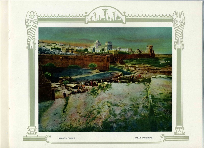A 16 page color view book in pictorial card covers. A Ste Anne de Beaupre Souvenir Book of the Cyclorama of Jerusalem in French and English. Measures about 8 1/2" x 11" when closed and in very fine condition. If you purchased souvenirs valued at 25 cents or more, you could see the Cyclorama free of charge. Located in Ste Anne de Beaupre Quebec Canada. Undated, appears to be from the 1930's.