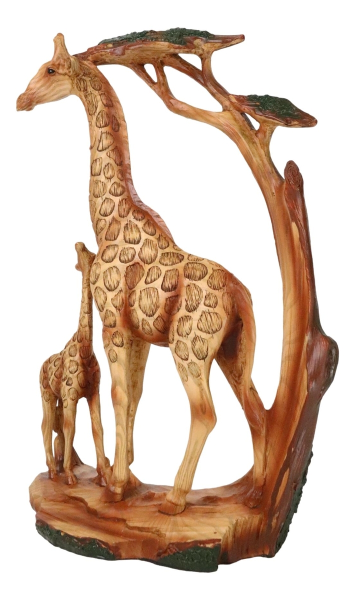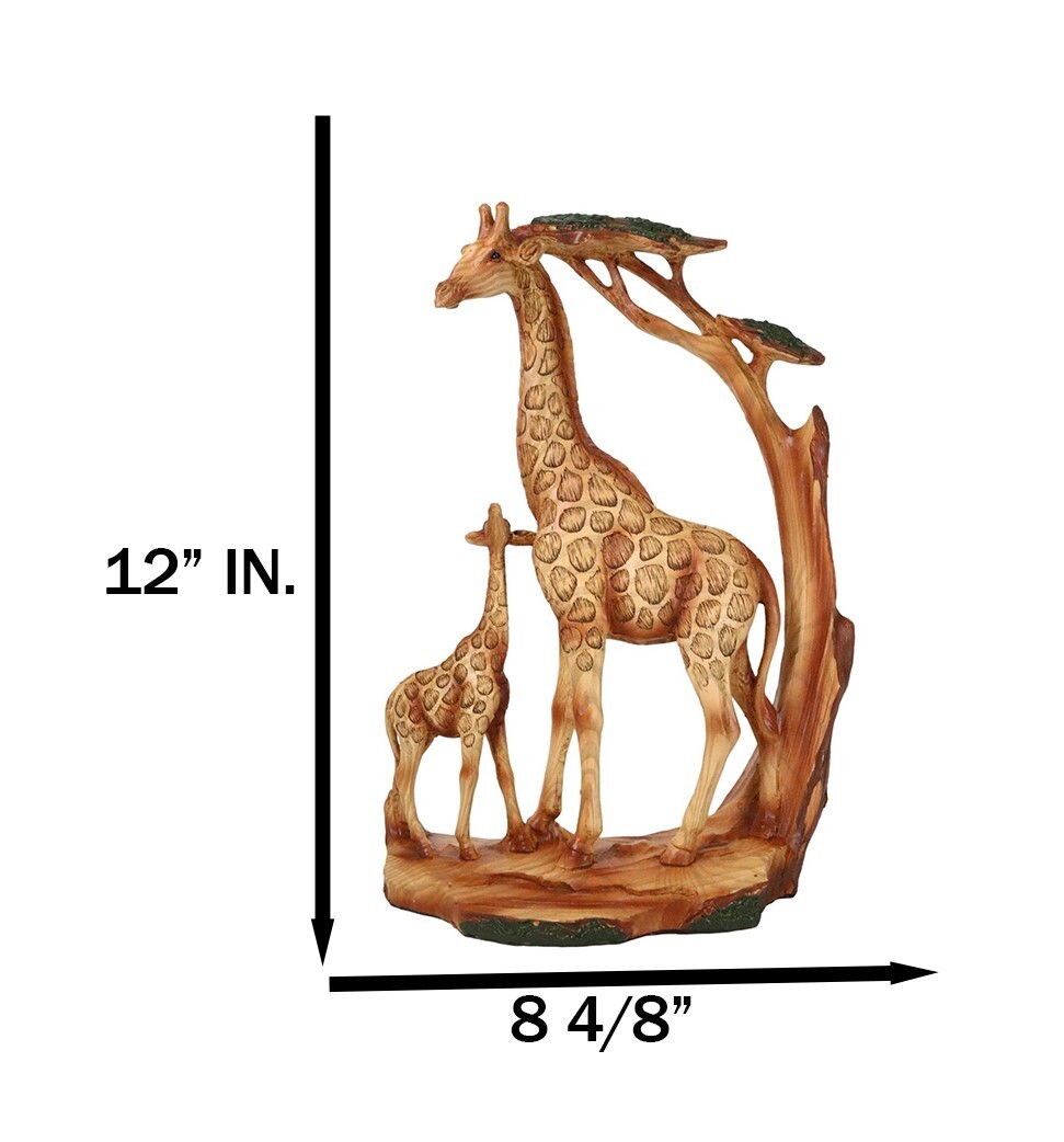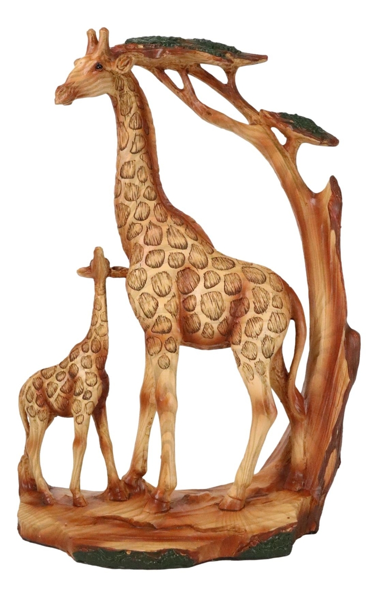 ? Bring the beauty of the African savanna into your home with our Giraffe Family Sculpture. Featuring a majestic father giraffe and his playful calf, this faux wooden sculpture captures the serene elegance of these iconic creatures in their natural habitat. The intricate detailing and natural wood finish evoke the rustic charm of the wild, while the subtle forest backdrop adds a touch of tranquil greenery. Perfect for animal lovers and nature enthusiasts.