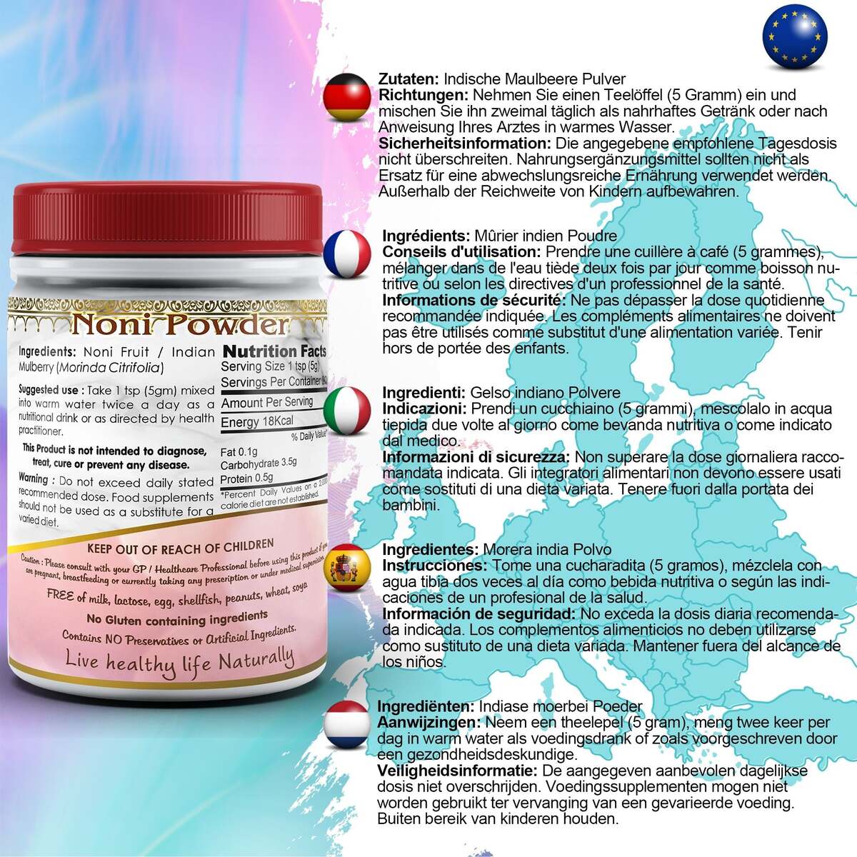 Quality Assured: Non-GMO, Gluten-Free, and Vegan-friendly.