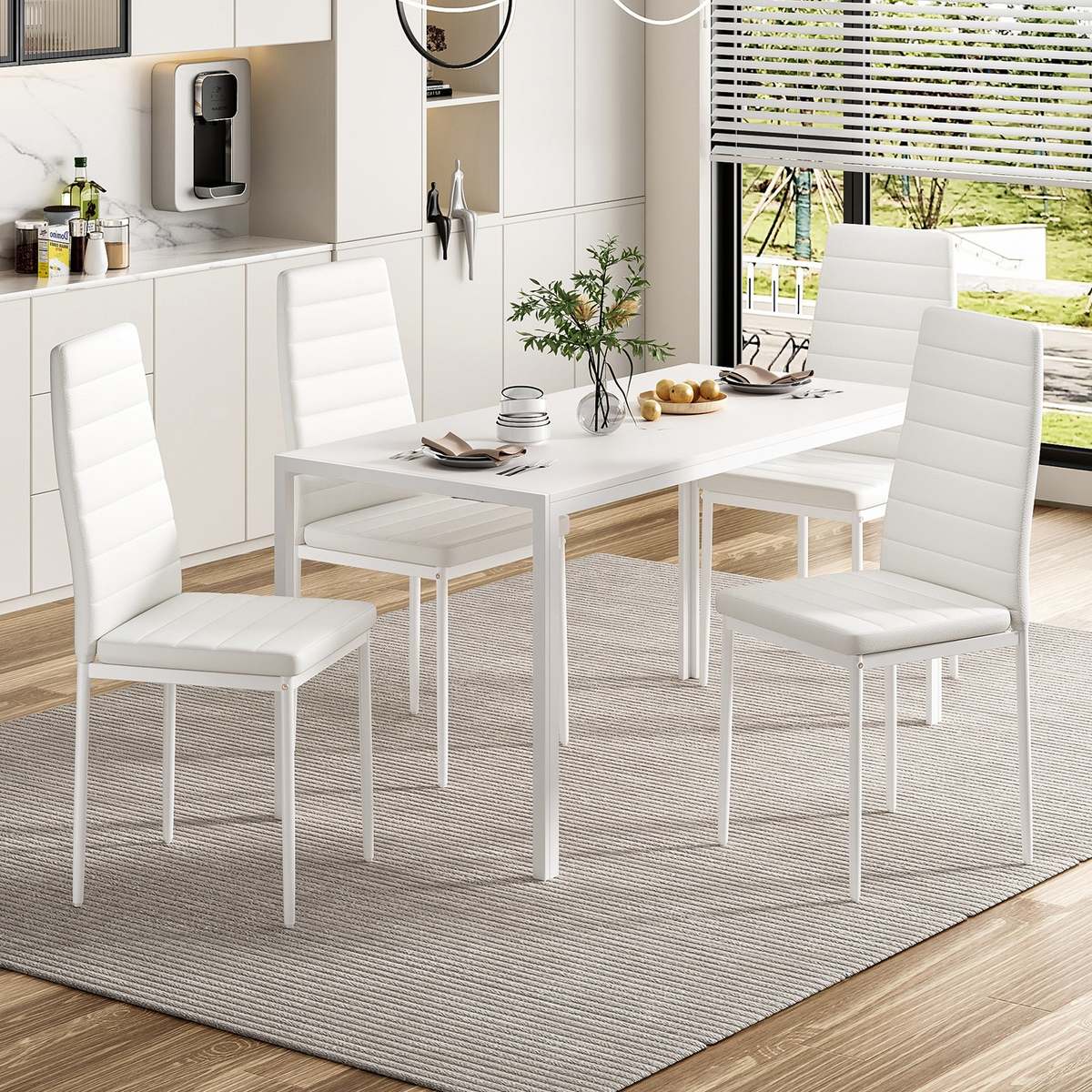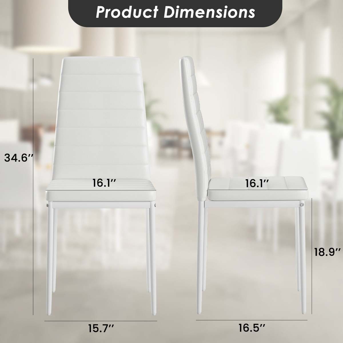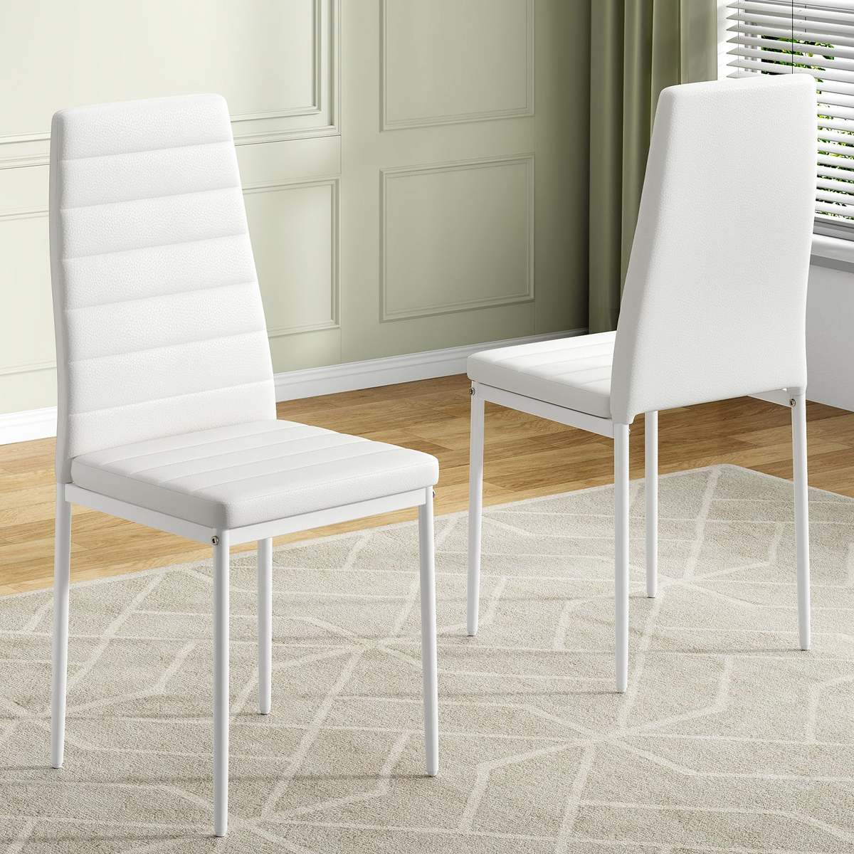 Set of 2 White PU Leather Modern Dining Chairs for Kitchen