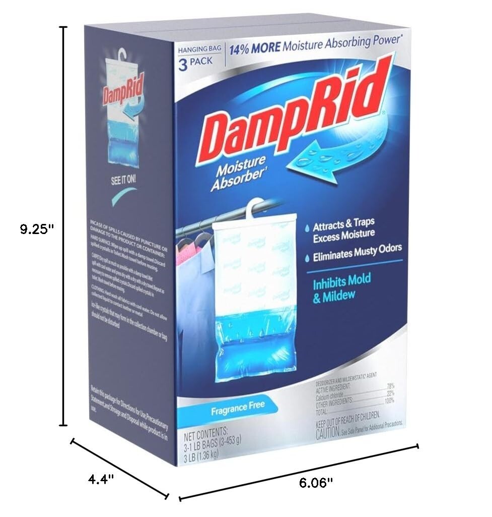 Bid farewell to musty odors and damp environments with our 3 Pack Fragrance-Free Moisture Absorbers. Crafted to outperform other brands with enhanced moisture absorbing technology, these bags are essential for maintaining an odor-free and comfortable living space.