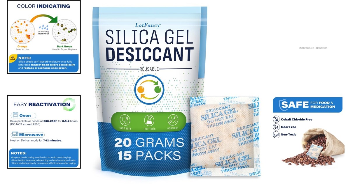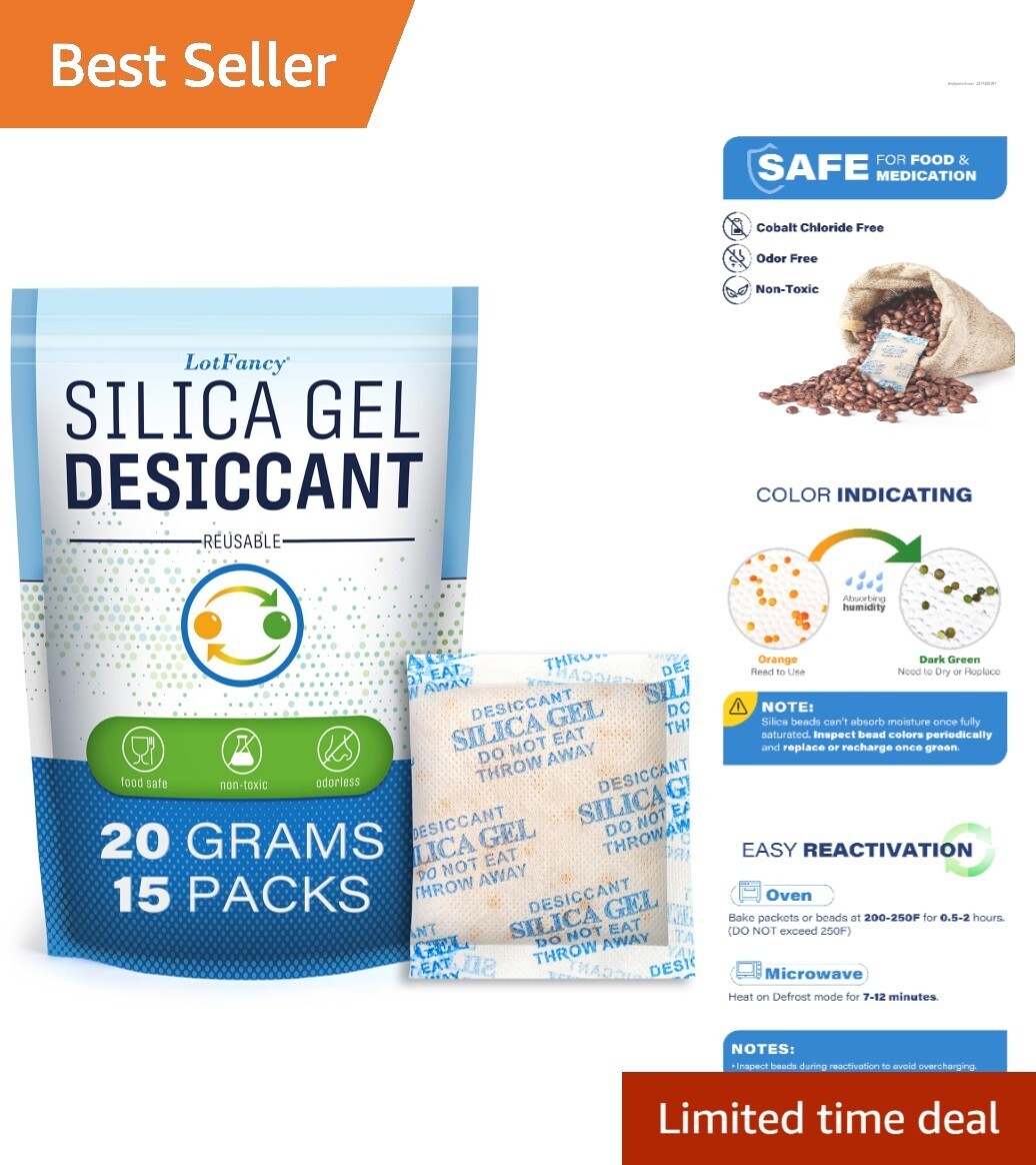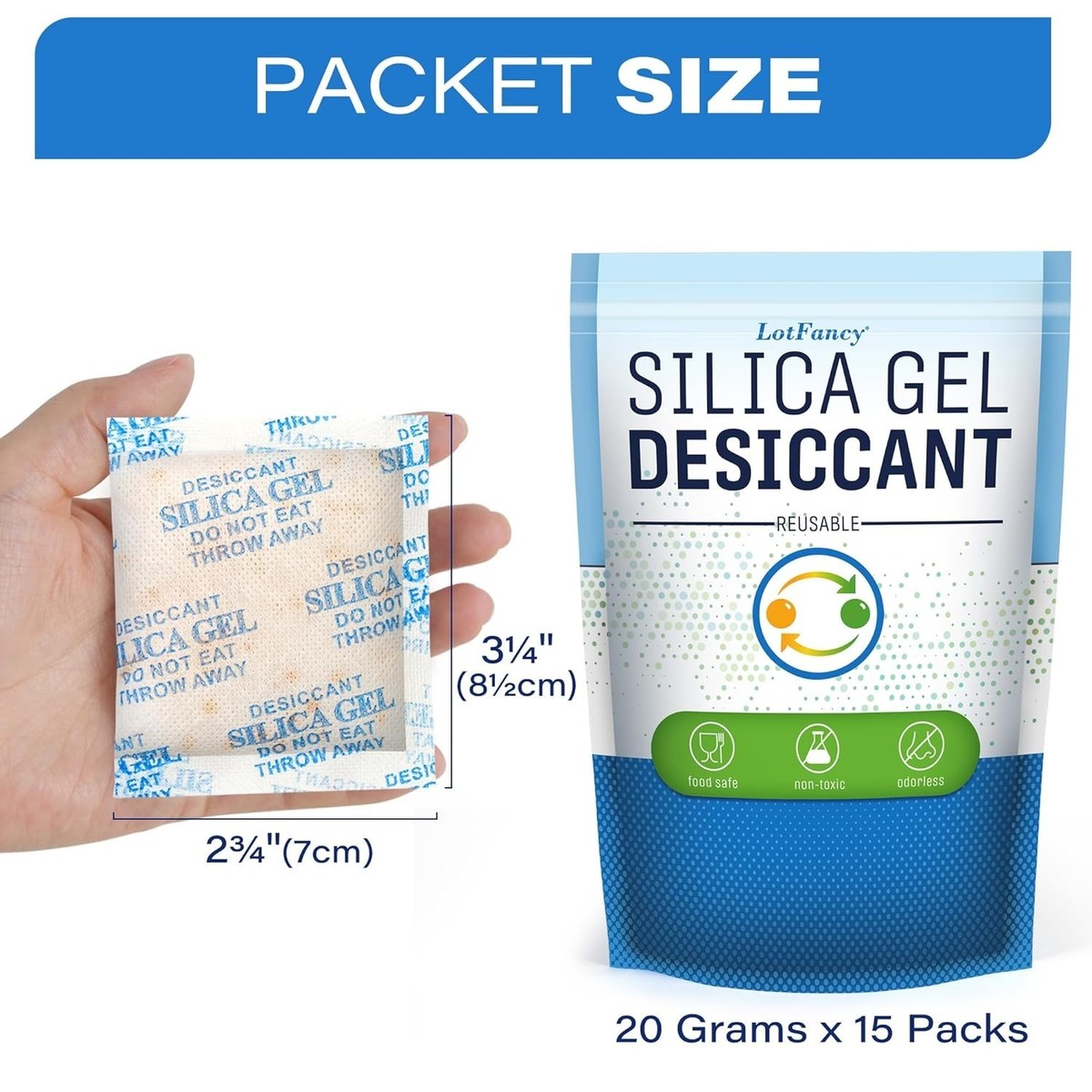 15 Packs of 20g Non-Toxic Silica Gel Desiccant – Ultimate Moisture Protection