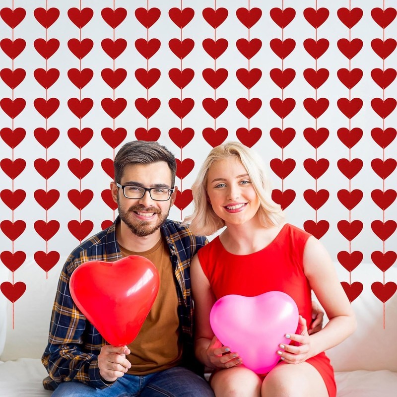 Package Includes - Add a touch of romance to your Valentine's Day celebrations with our Valentines day decor, including 4 strings of heart banners, each adorned with 10 pieces red felt hearts, 40 pieces red hearts in total.