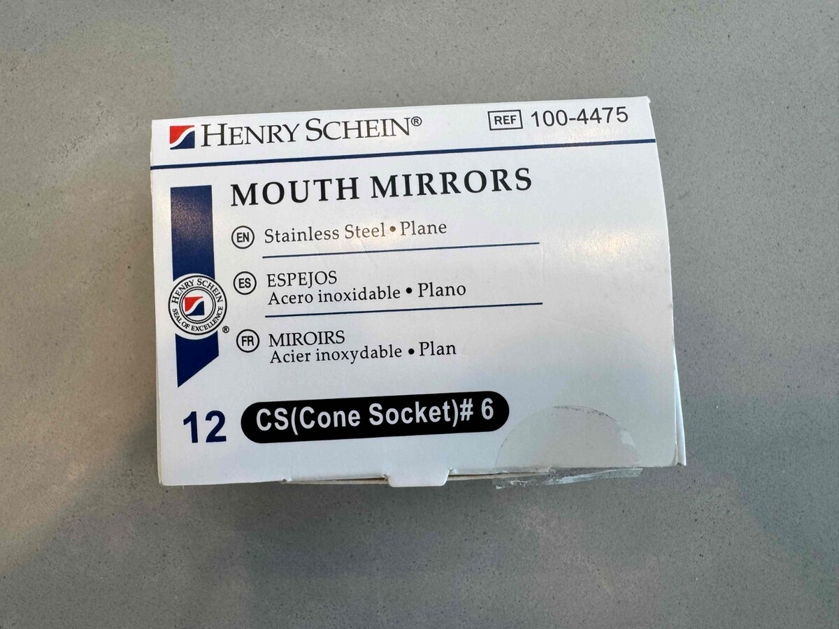 The Henry Schein New Dental Mouth Mirror Front Surface CS#6 100-4475 is a high-quality dental instrument designed for use in dentistry. This mirror features a front surface design and is part of a pack containing 12 units. Manufactured by the reputable brand Henry Schein in the United States, this mouth mirror is a reliable tool for dental professionals in various disciplines. With its precise design and durable construction, this mouth mirror is an essential addition to any dental practice.