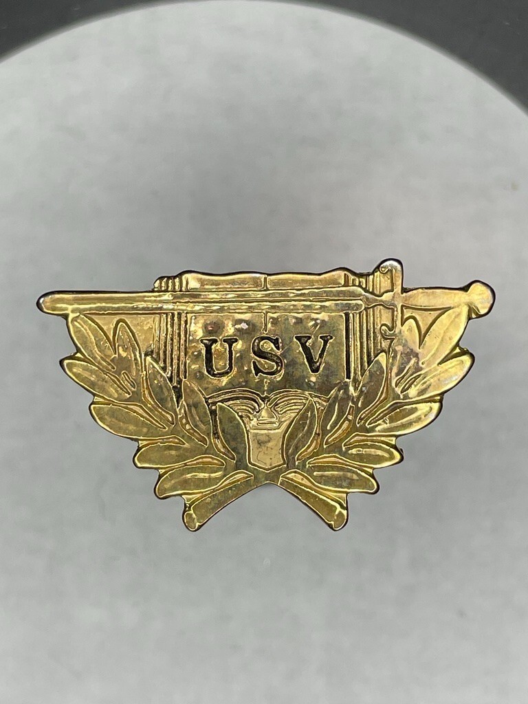 reproduction of a Civil War-era Union Army cap badge or hat pin