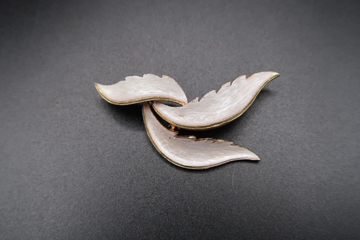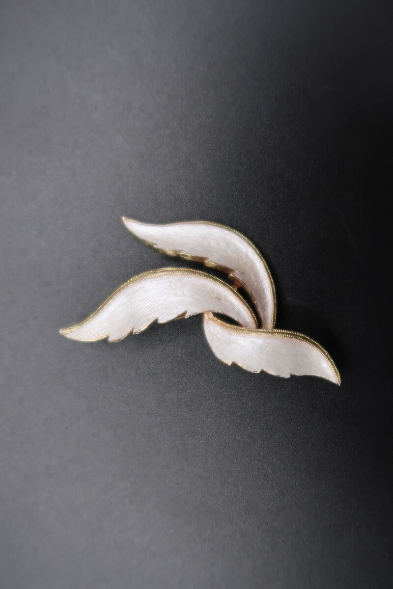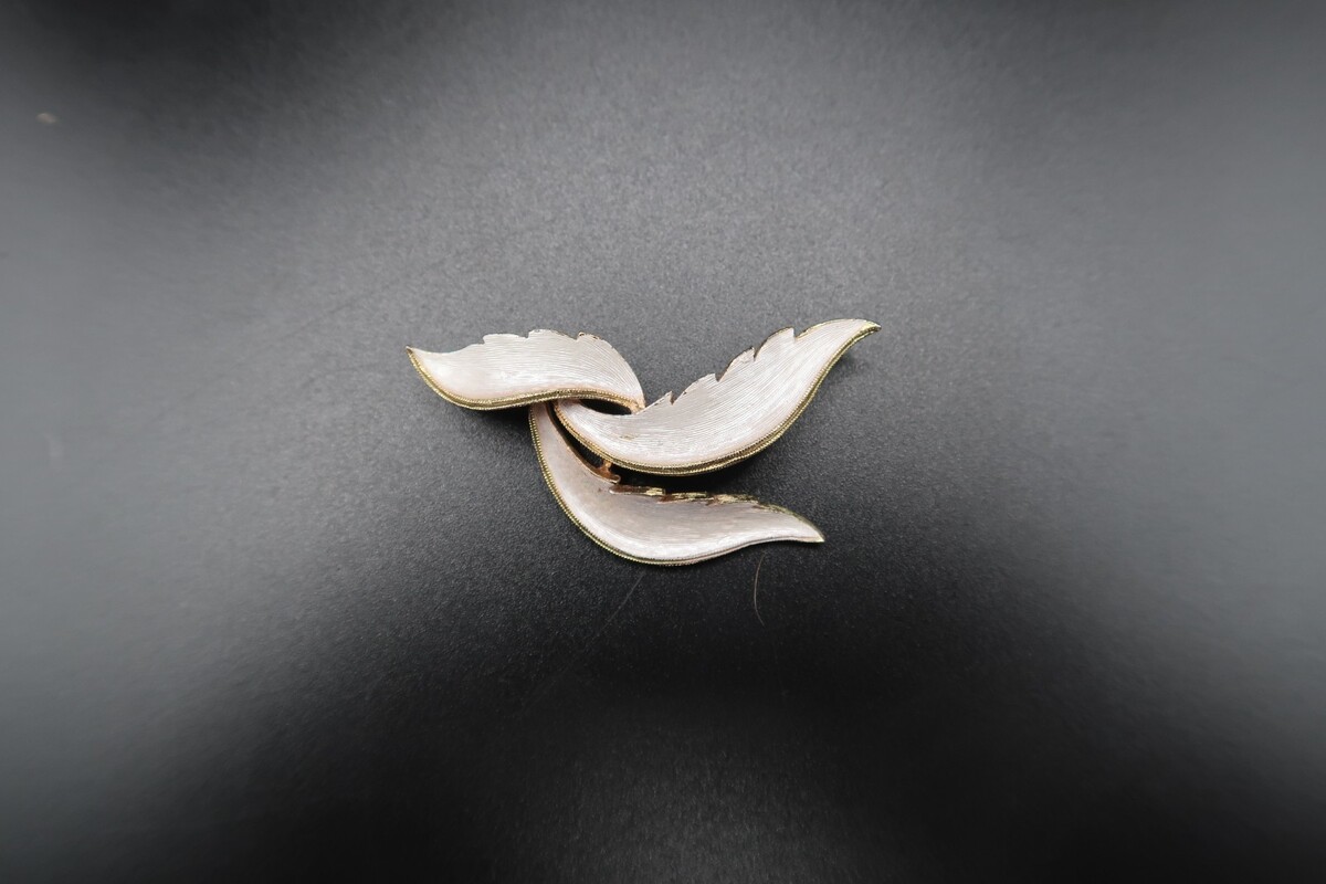 Vtg JJ Jonette Jewelry White Enamel Gold Tone Leaf Brooch Mid-Century