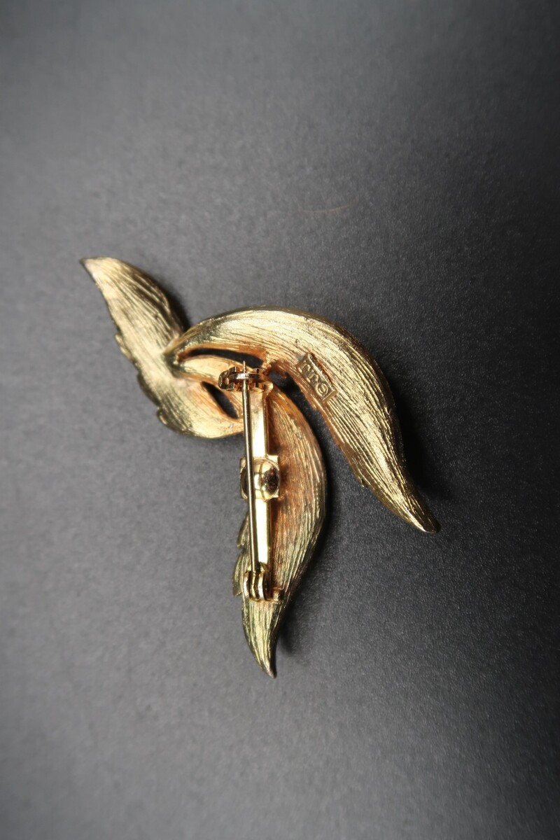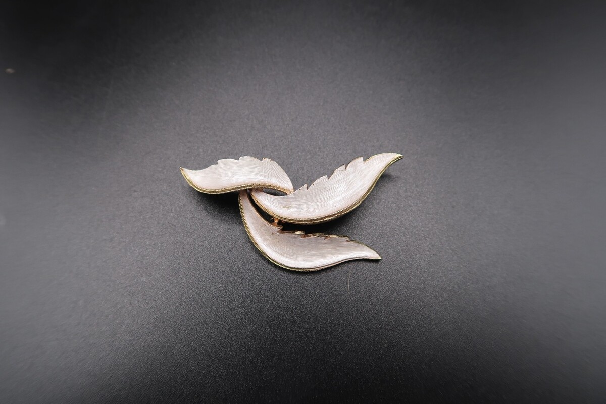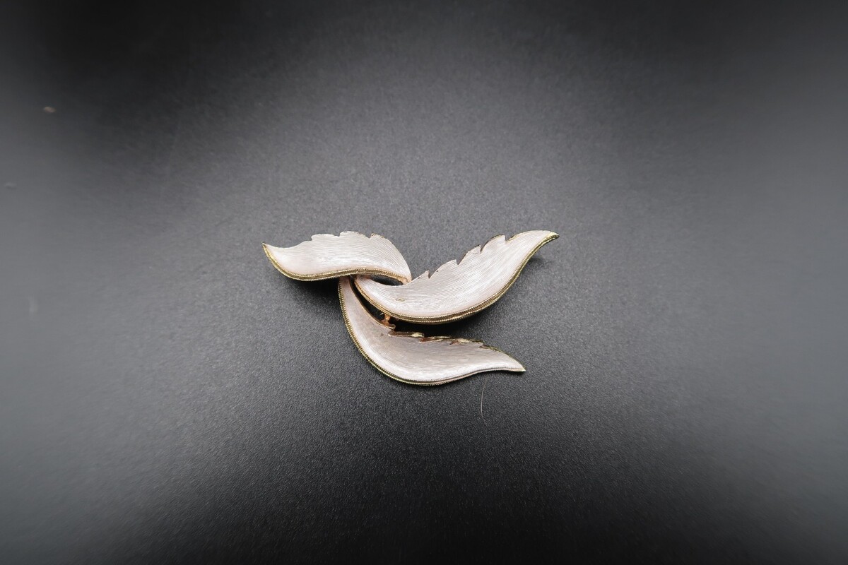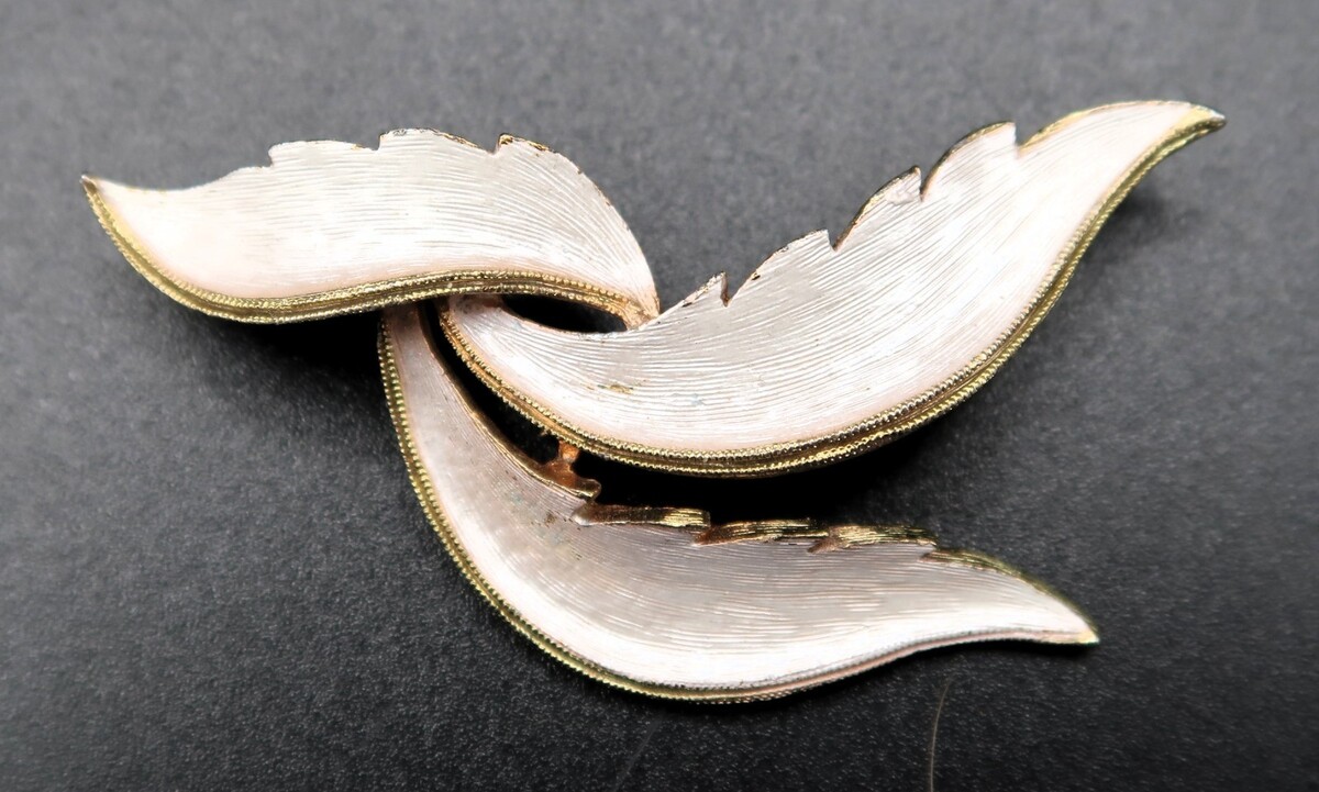 Vtg JJ Jonette Jewelry White Enamel Gold Tone Leaf Brooch Mid-Century
