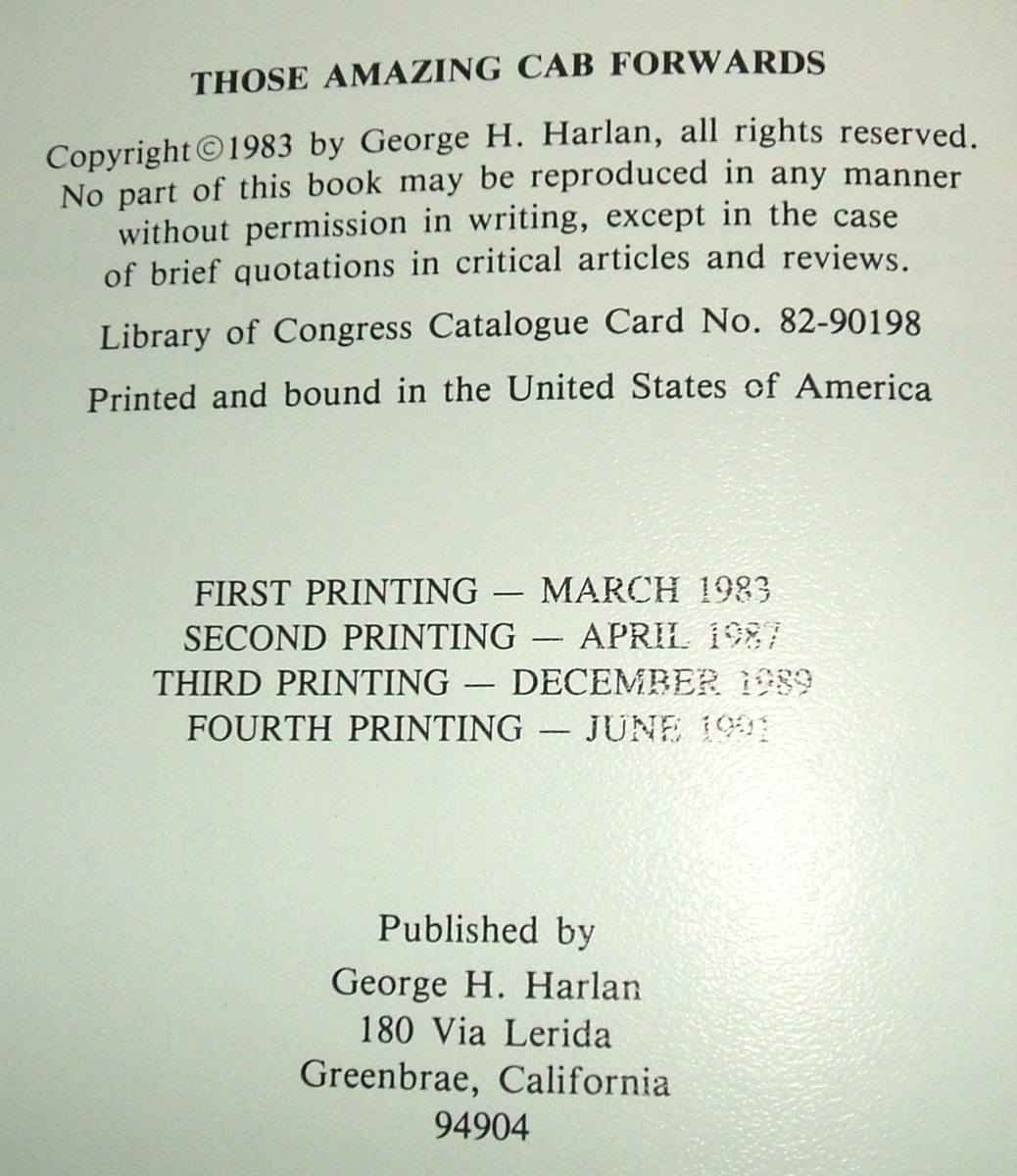HARDcover book: "Those Amazing Cab Forwards" 160 pages BEAUTIFUL condition!