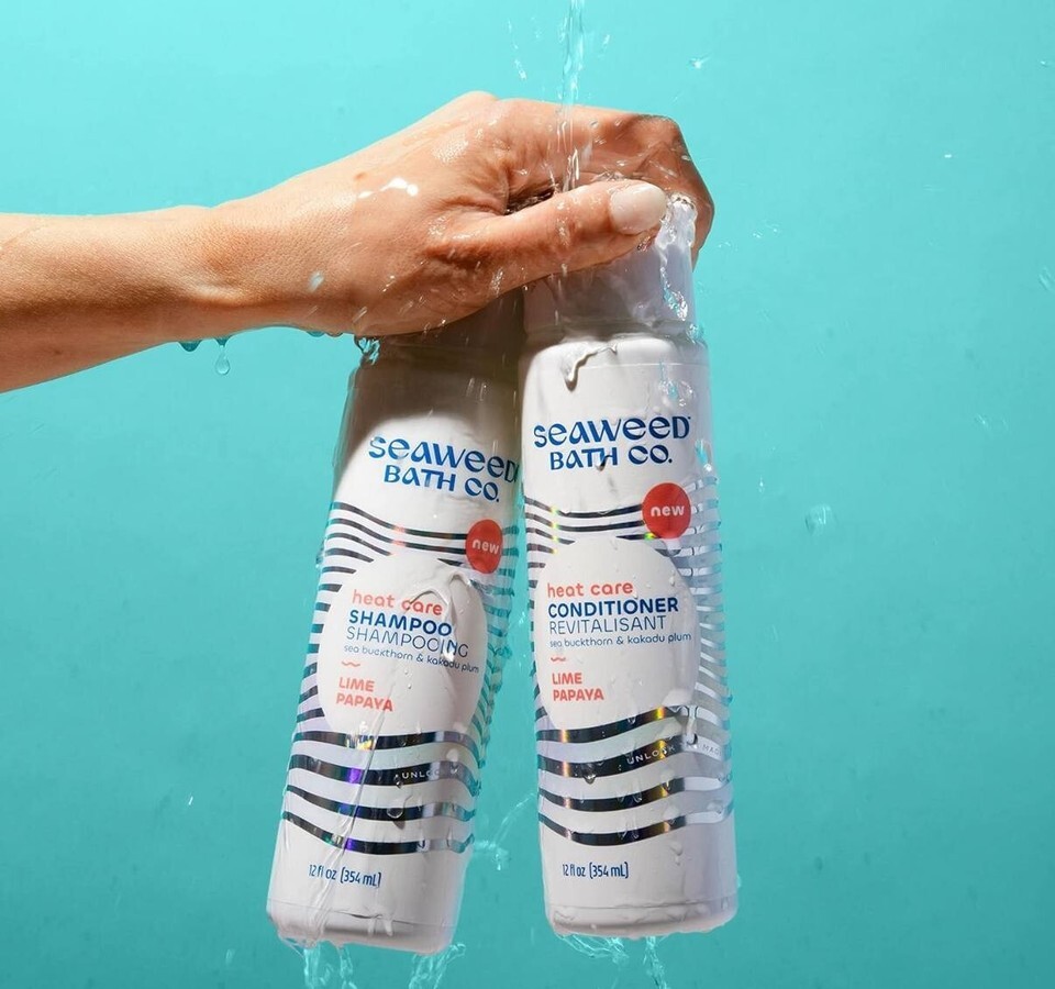 Seaweed Bath Co. Heat Care Shampoo + Conditioner, Lime Papaya Scent, 12 Ounce, Sustainably Harvested Seaweed, Sea Buckthorn, Kakadu Plum, For Heat Damaged Hair