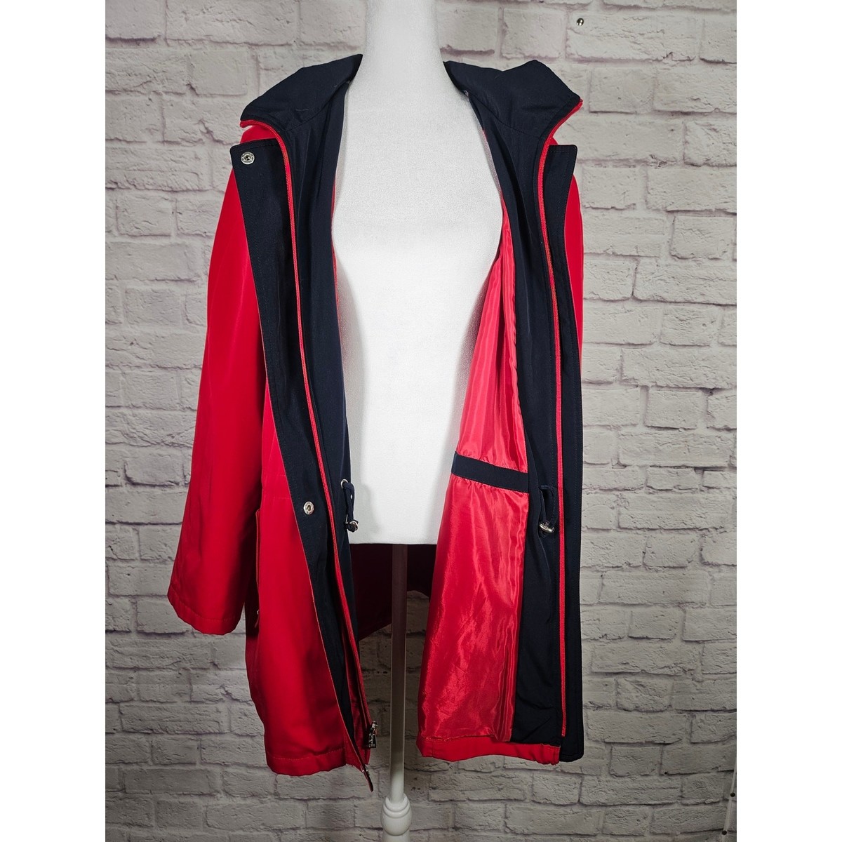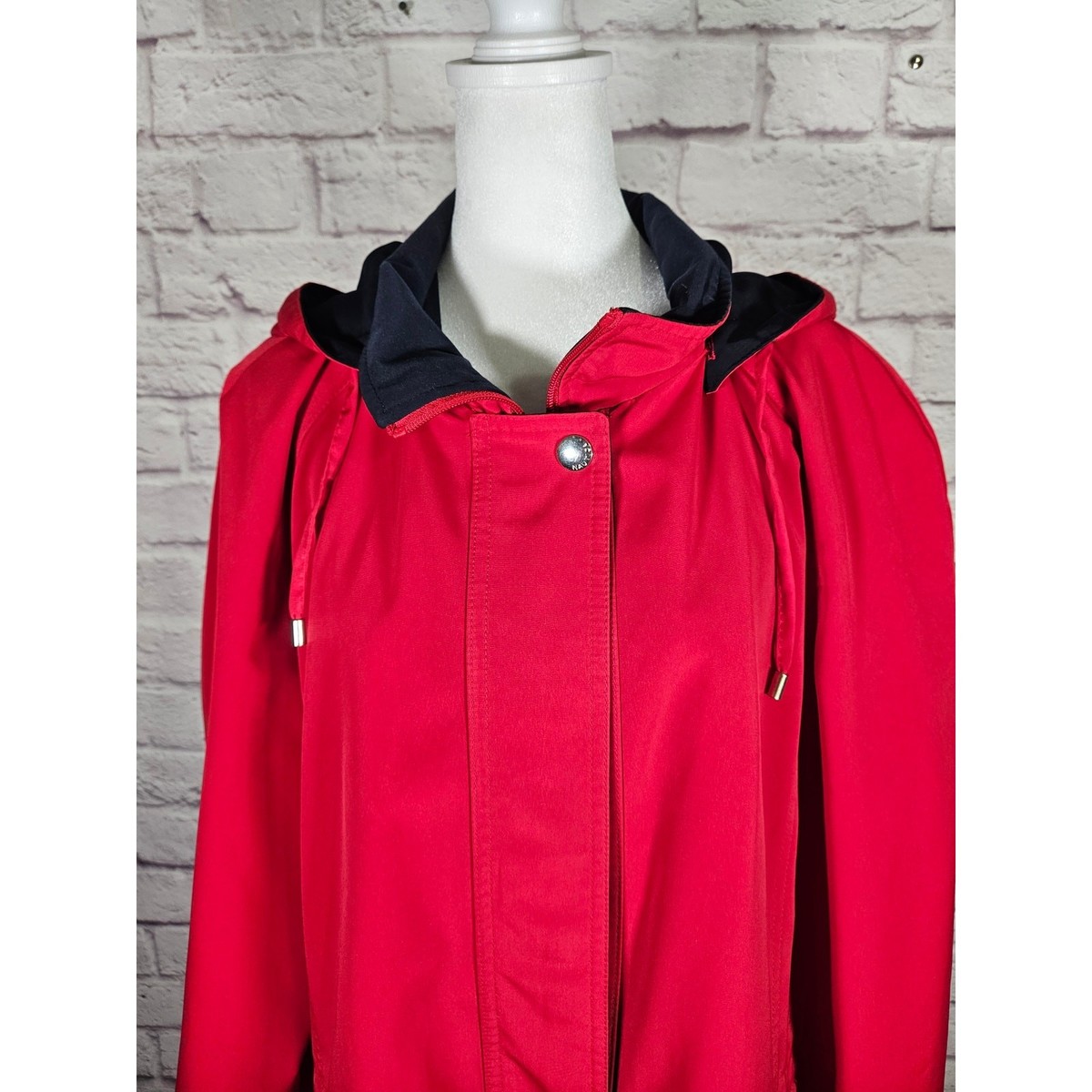 Nautica Womens Hooded Raincoat Jacket Red Pockets Detachable Hood Size XL