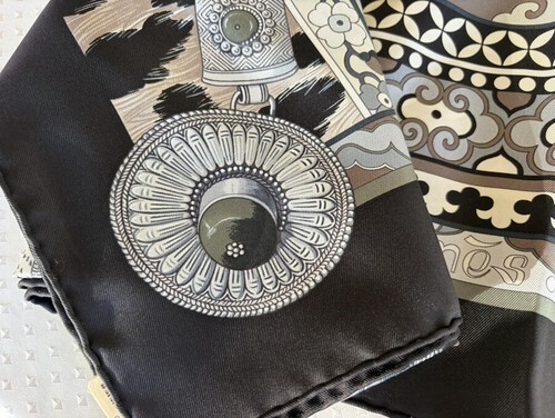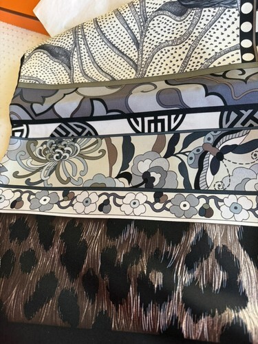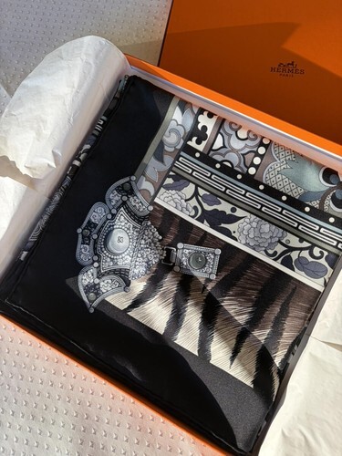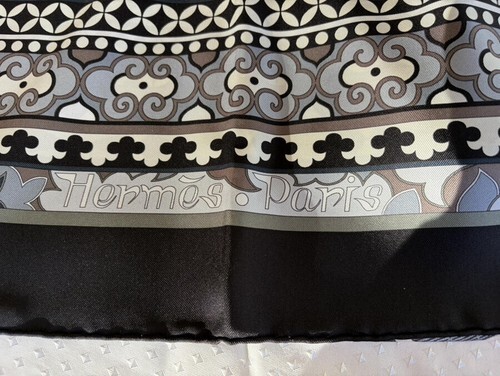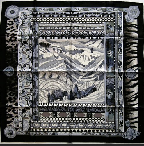 New Hermes La Femme Aux Semelles De Vent #08 90 Silk Scarf Noir/Sepia/Blanc Rare