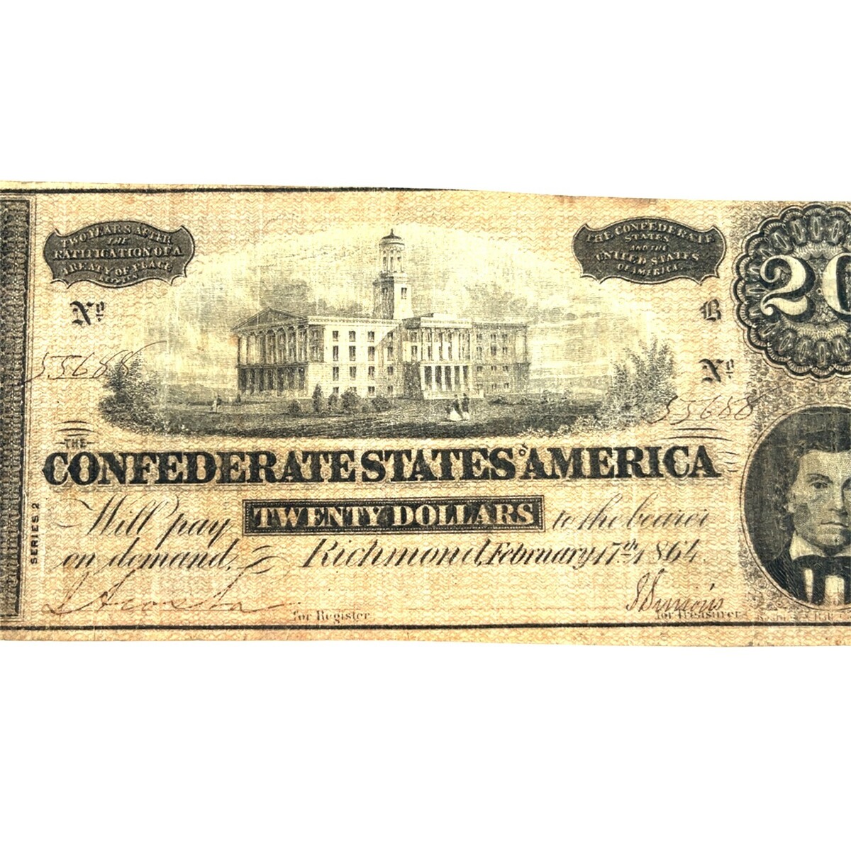 1864 Confederate States Civil War Note T-67 Authentic Richmond Currency