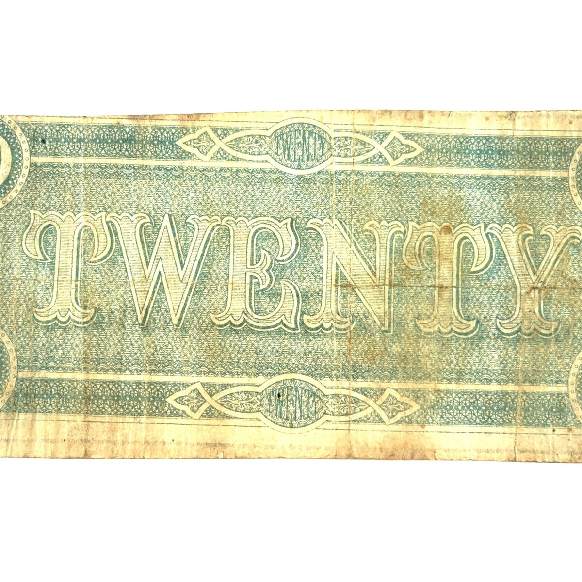 Condition Notes: Uneven margins. Nice, sharp edges/corners. Several vertical fold lines. Minimal creases. No rips, tears, or losses. Discoloration and yellowing from age and use. Several stains on the note. Most writing is visible and readable. No graffiti or pinholes. No stamps on the bill.