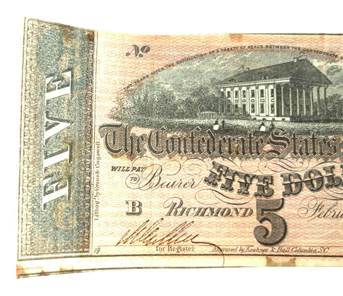 1864 Confederate States Civil War Note T-69 Seventh Series XF+ Condition
