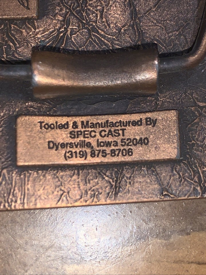 The Tractor Implement Supply Co. Vintage Belt Buckle from 1995 by Spec Cast is a unique accessory with a copper color theme. Made of original material in the United States, this belt buckle is suitable for adult unisex wearers who appreciate vintage pieces. Perfect for individuals interested in vehicles/transportation designs, this belt buckle offers a touch of nostalgia and style to any outfit.