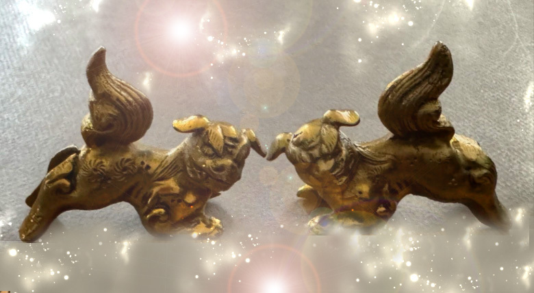 HAUNTED ANTIQUE BRASS FOO DOGS GUARDIANS OF FORTUNE HIGHEST LIGHT MAGICK