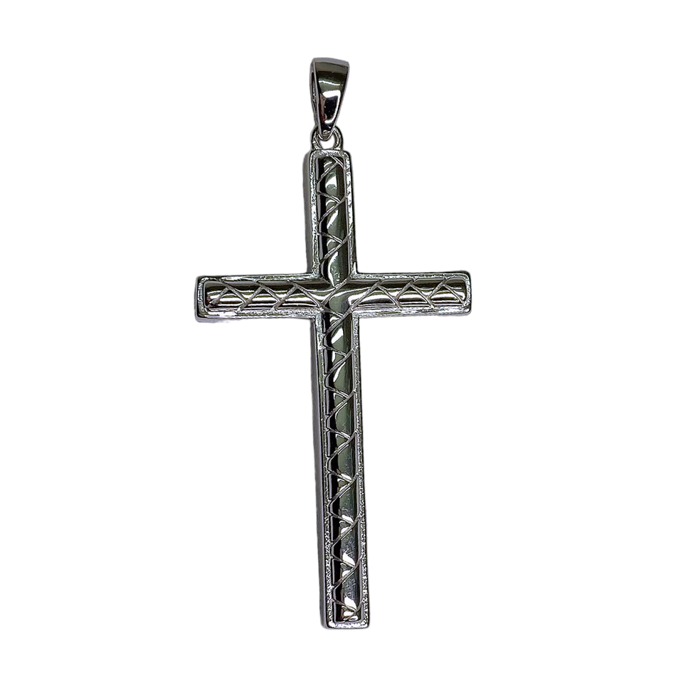 925 Sterling Silver Cross Pendant | White Gold Rhodium Finish | Unisex Gift