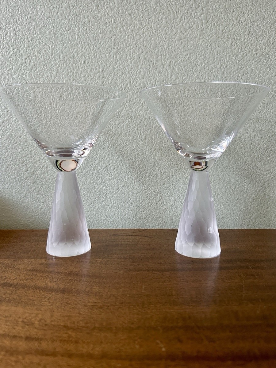 3-Artland Prescott Crystal Martini Wine Glasses Clear Frosted Honeycomb Stem