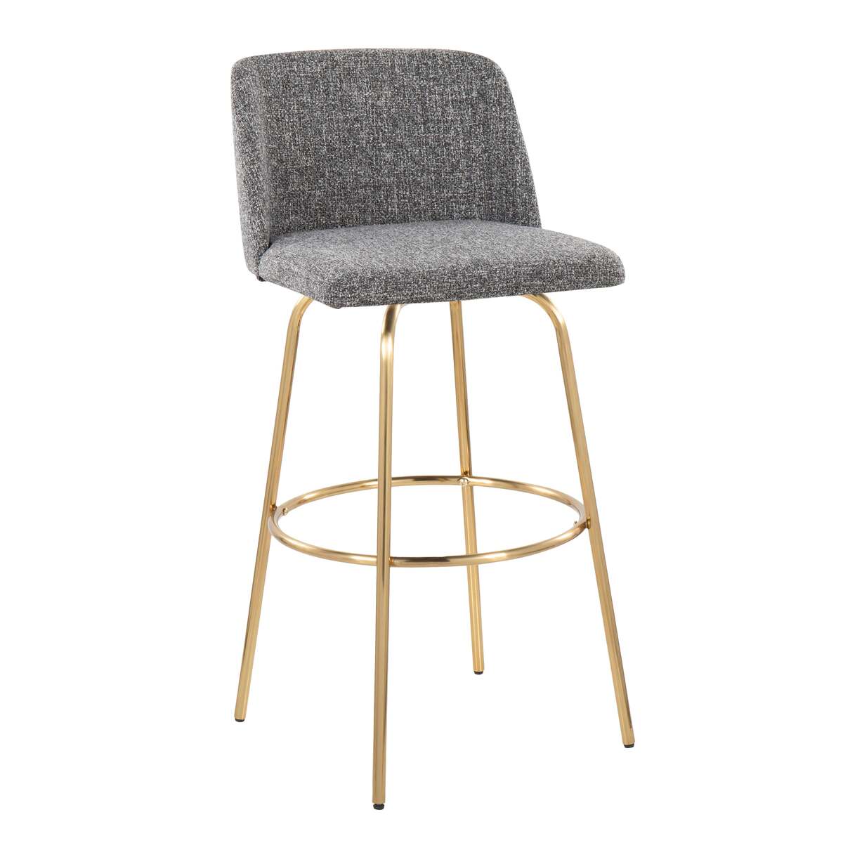 Comfort, modern simplicity, and classic lines define the appealing look of the Toriano Fixed-Height Barstool by LumiSource. A padded upholstered swivel seat sits on fixed-height metal legs with a built-in footrest. Available in various colors, choose the one that suits your space best!