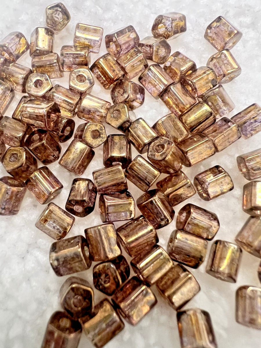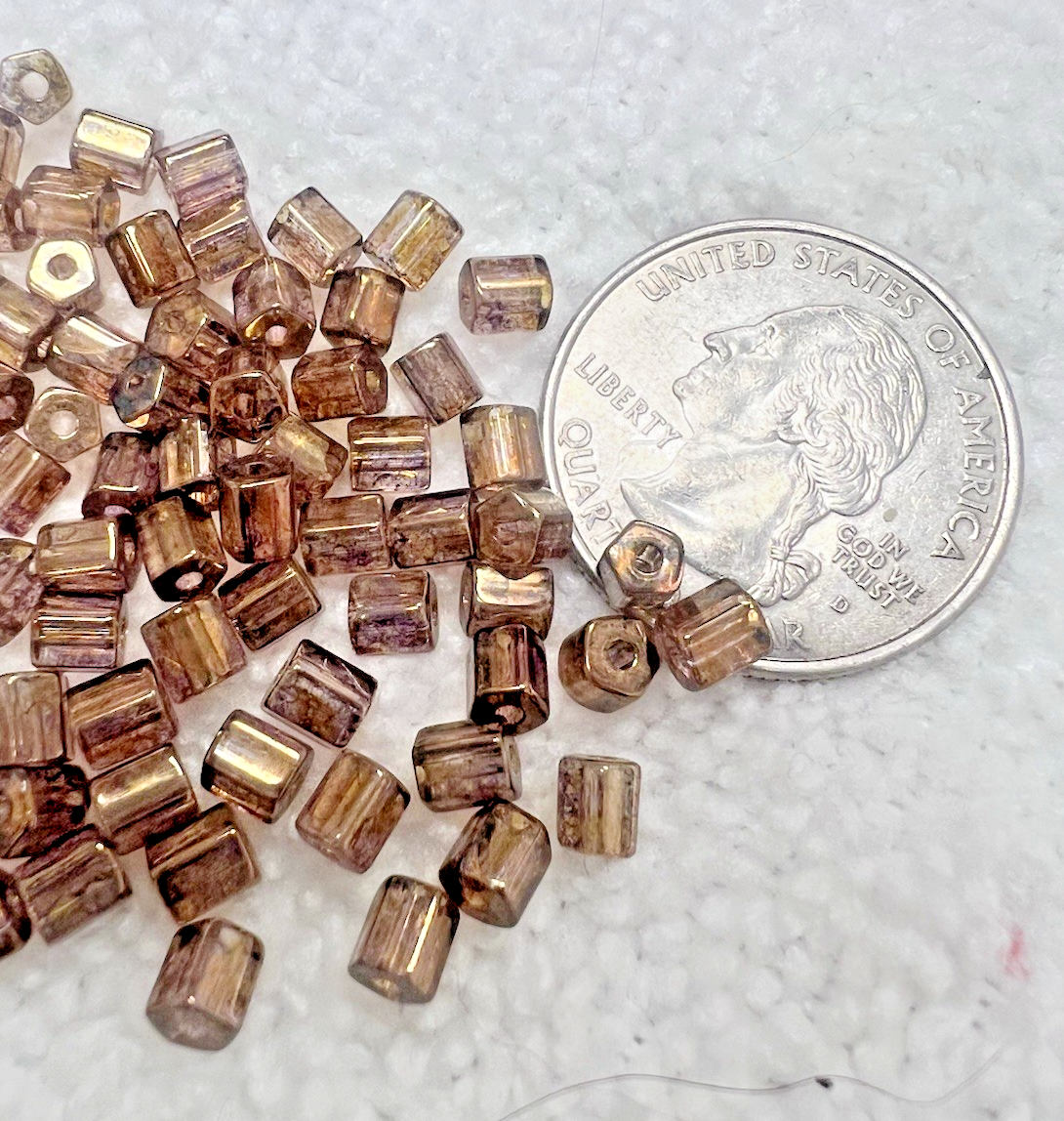 80 Older Clear w Coppery 5 Sided Tubes 3/16th L x 1/8 W Shimmery Color