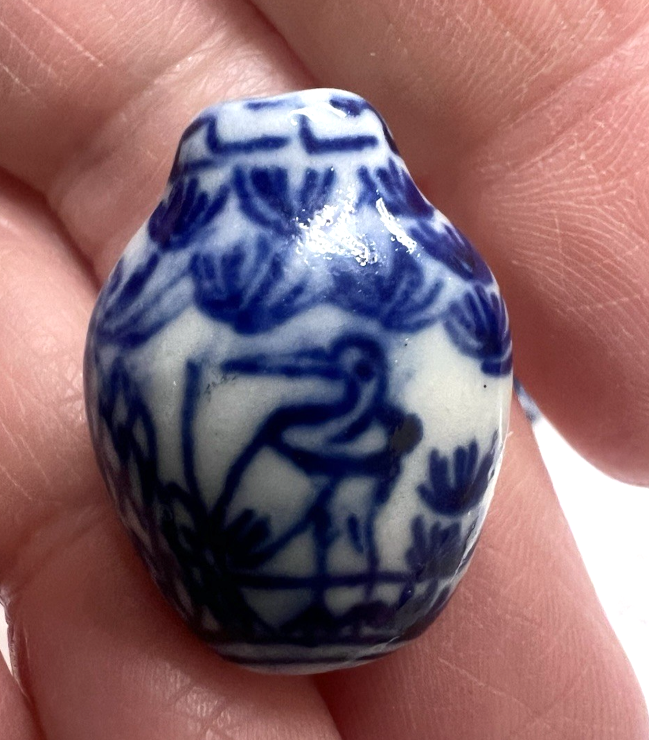 3 Older Blue White Porcelain Vase Shaped Beads w Bird & Floral Design 7/8L 3/4W