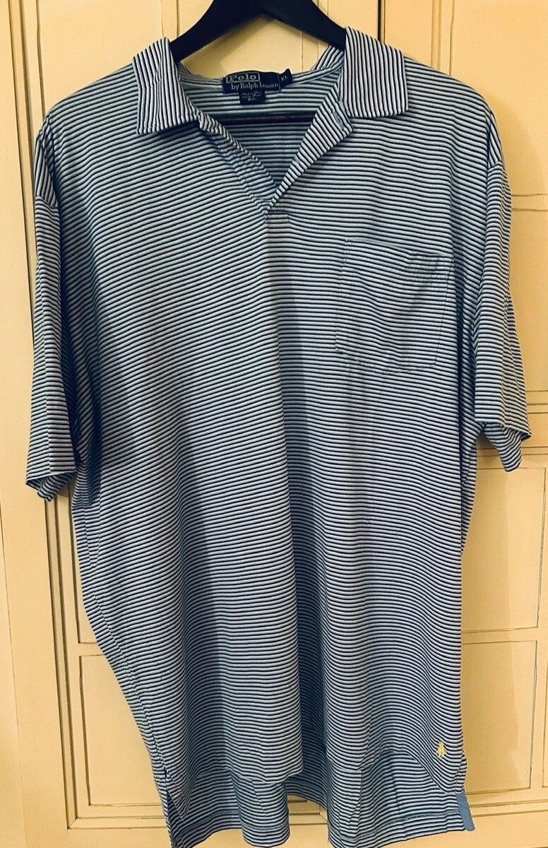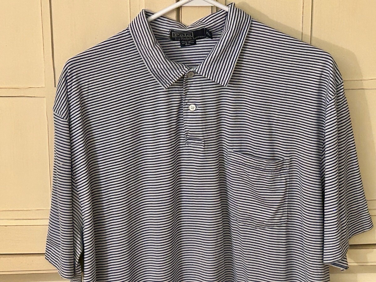 Polo Ralph Lauren Men’s XL Blue Stripe Short Sleeve Knit Shirt 100% Prima Cotton