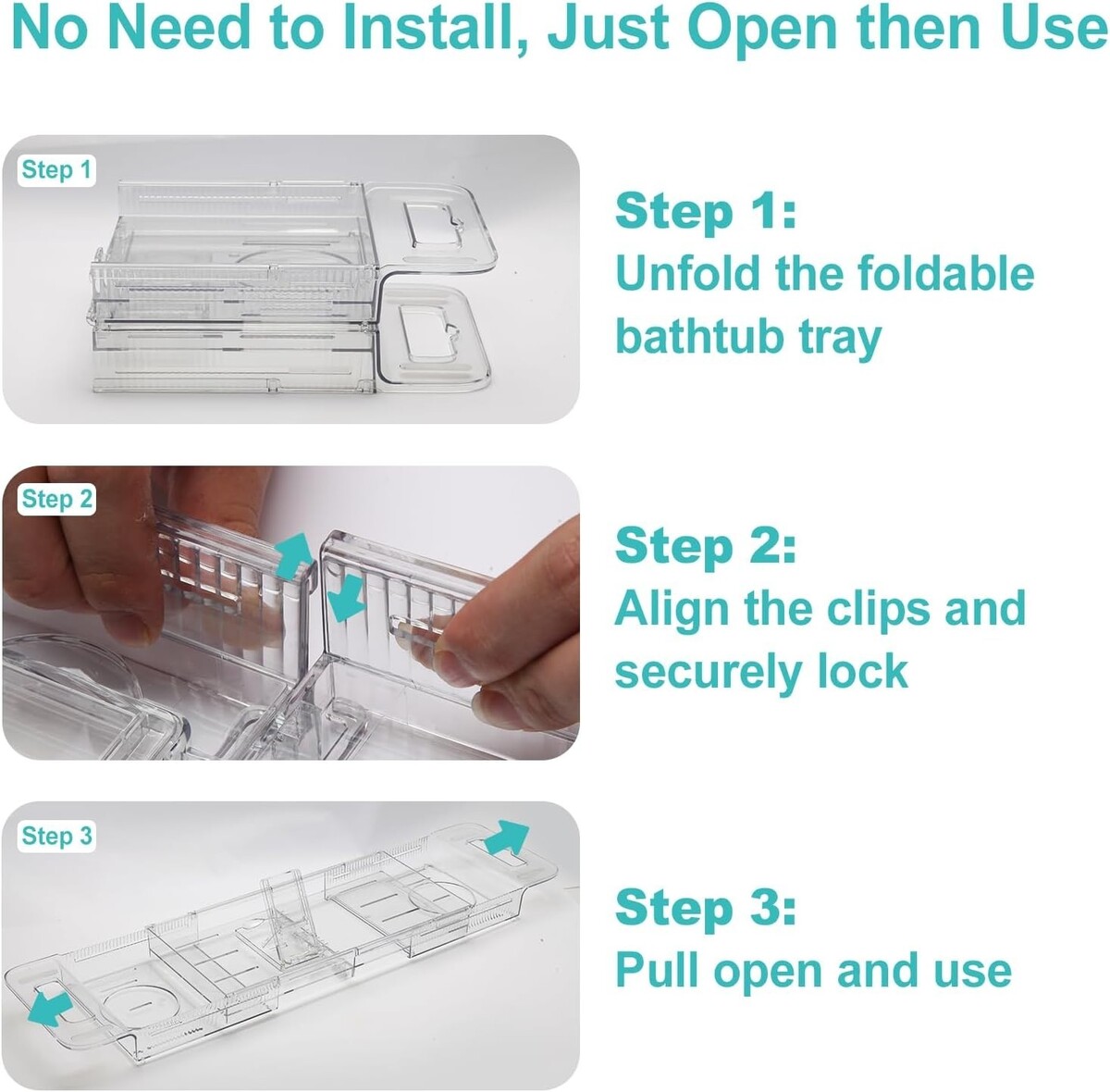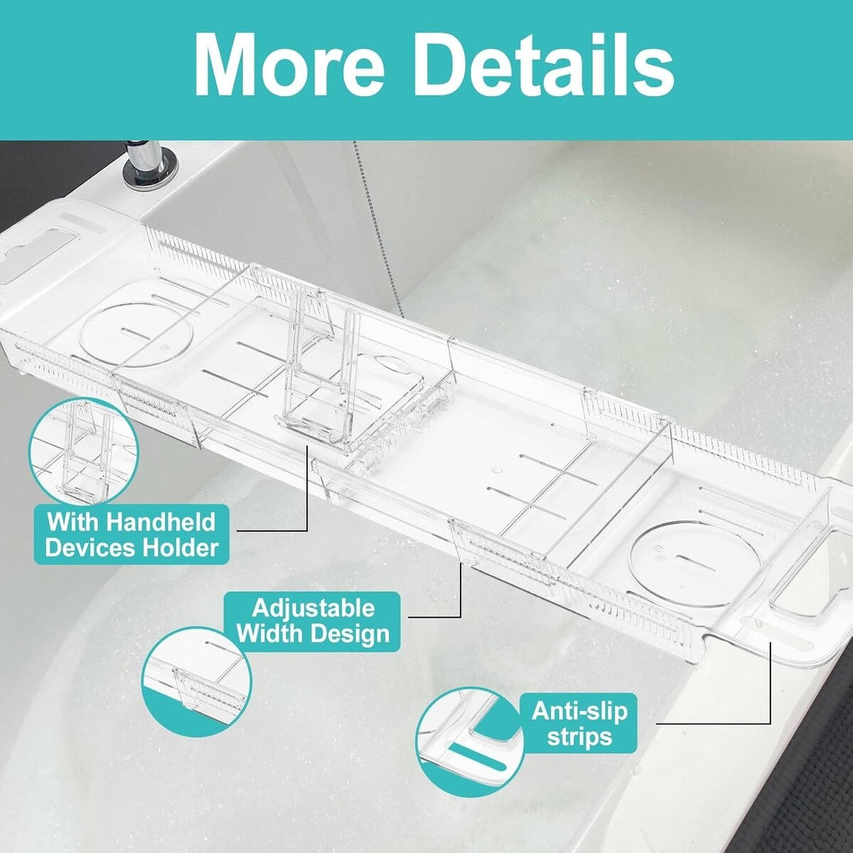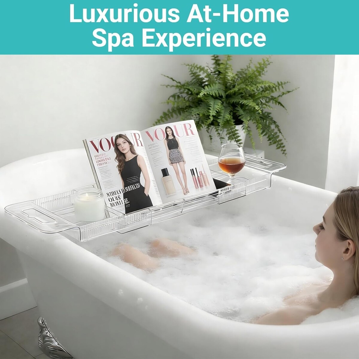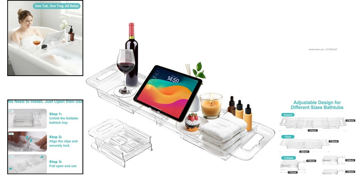 Expandable Bathtub Tray Caddy - Foldable Clear Bath Organizer for Spa Relaxation