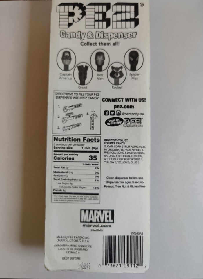Crafted for both collectors and kids alike, the dispenser features the intricate design and attention to detail that Pez is known for. Whether you're looking to complete your assortment of superhero memorabilia or searching for a unique gift, this Iron Man Pez dispenser is a must-have that will delight any enthusiast of the series.