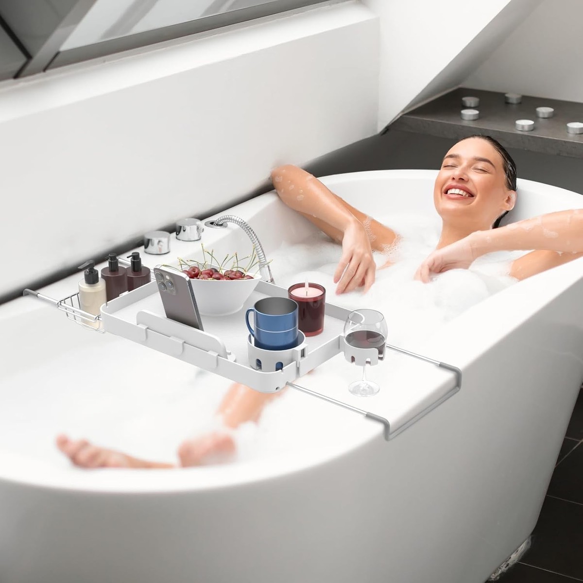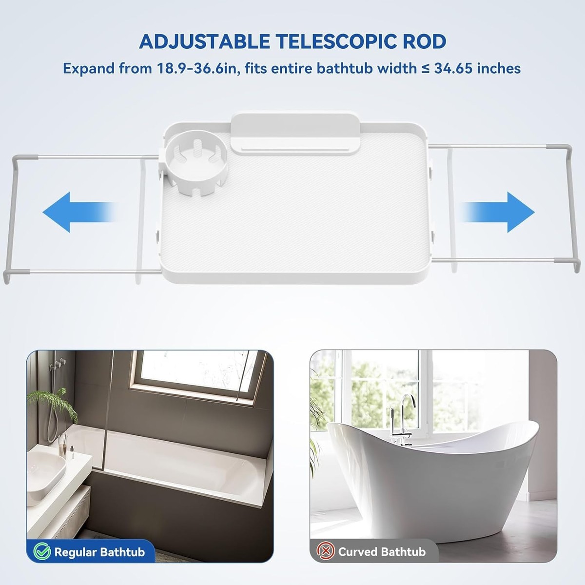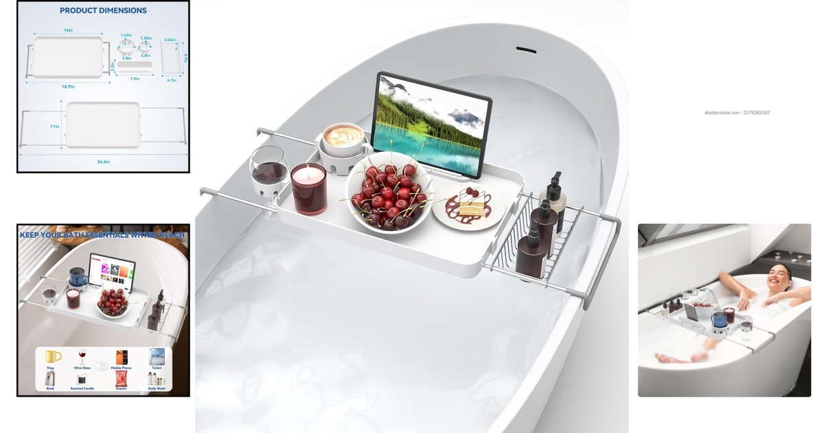 Elegant Adjustable Bath Shelf - Secure Bathtub Tray with Removable Accessories