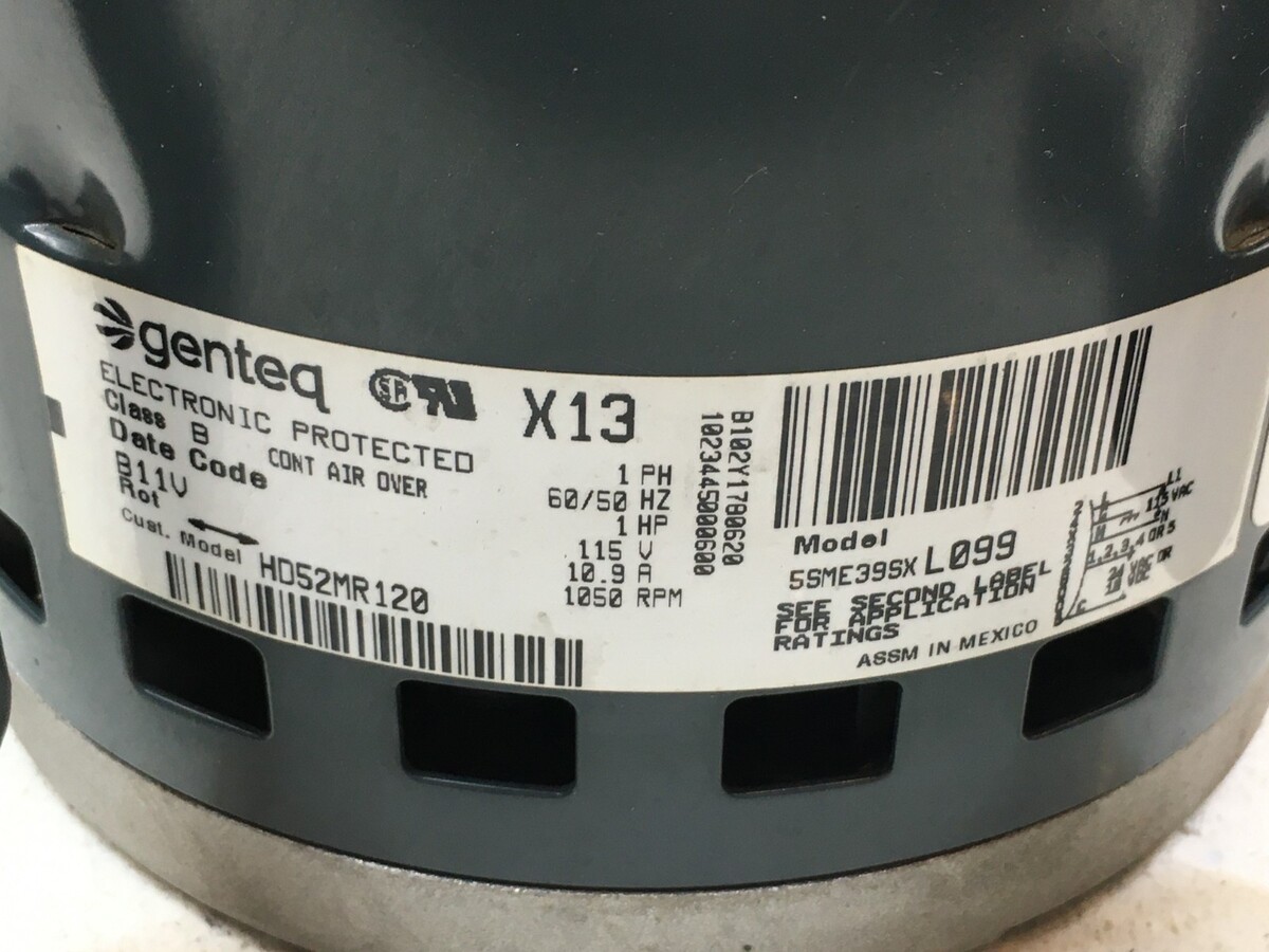 This is Genteq 5SME39SXL099 ECM Blower Motor 1HP 115V 1050 RPM HD52MR120 CCW lead end rotation used part.