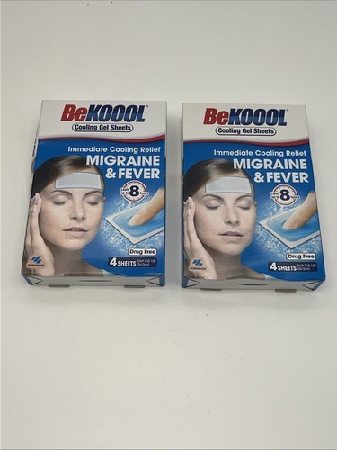 2 pack Be Koool Adult Migraine Cooling Relief Gel Sheets 4ct