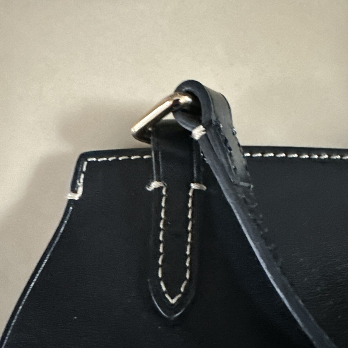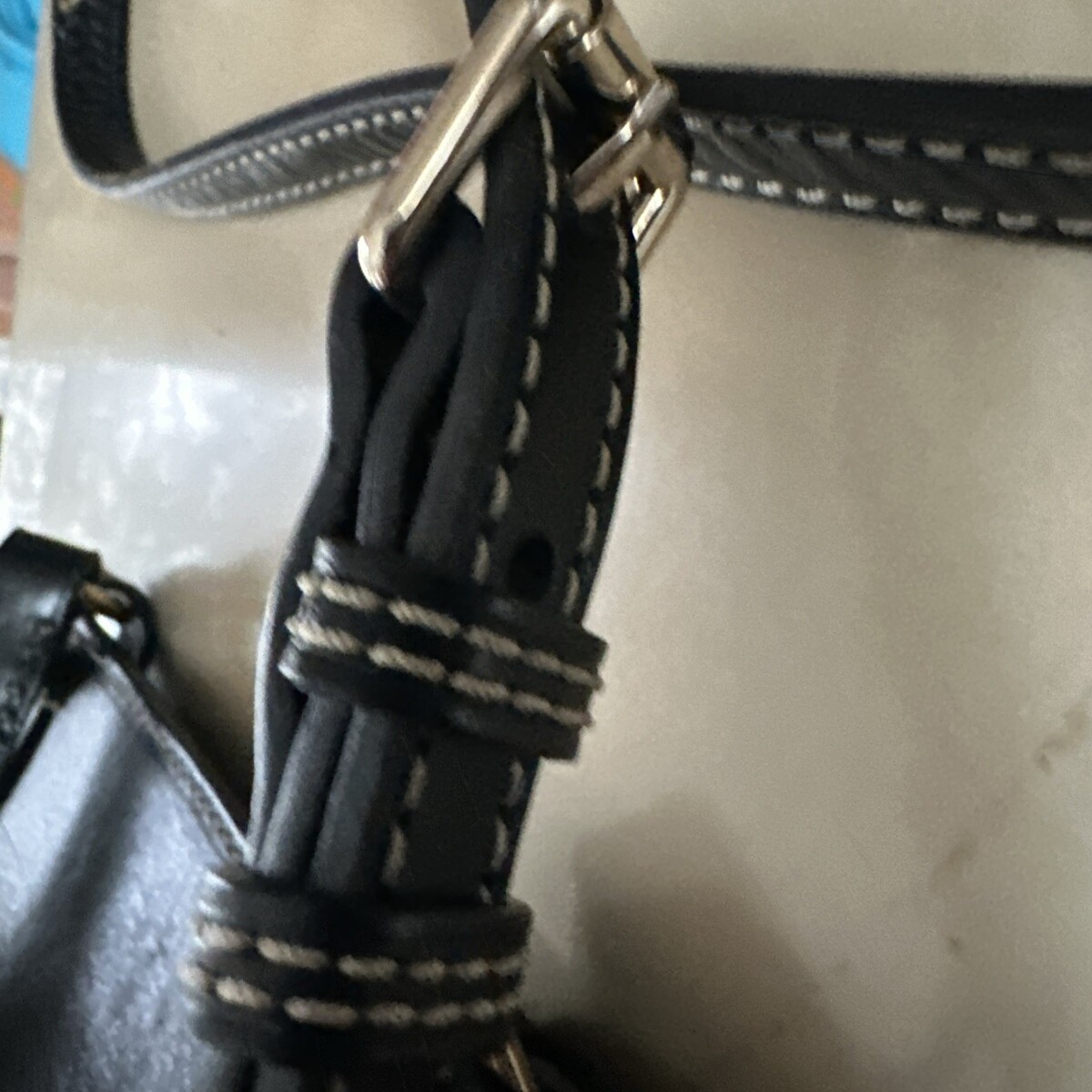 Yellow brass hardware on shoulder strap