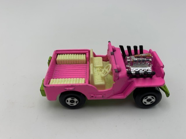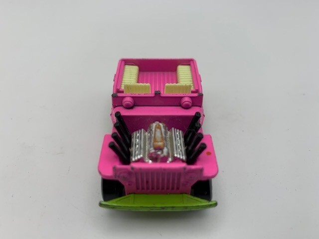 VINTAGE LESNEY MATCHBOX #2 JEEP HOT ROD SUPERFAST PINK (read) Good over all, please note the top of the front window is missing per images. Please refer to images.