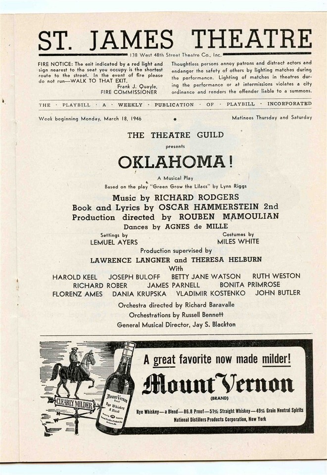 Playbill Oklahoma St James Theatre 1946 Harold Keel
