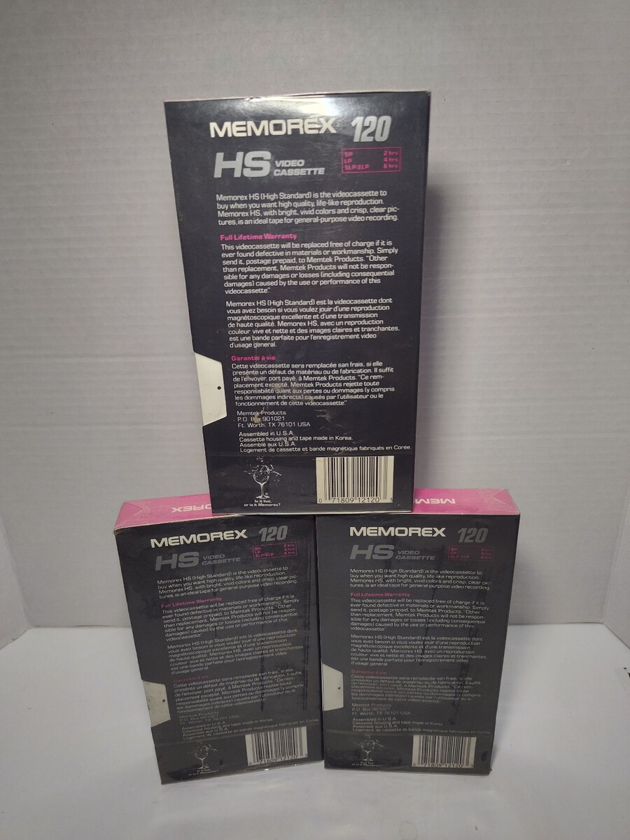 Memorex HS Video Cassette 120 High Standard Tape VHS Tape 3 Pack NEW - Sealed