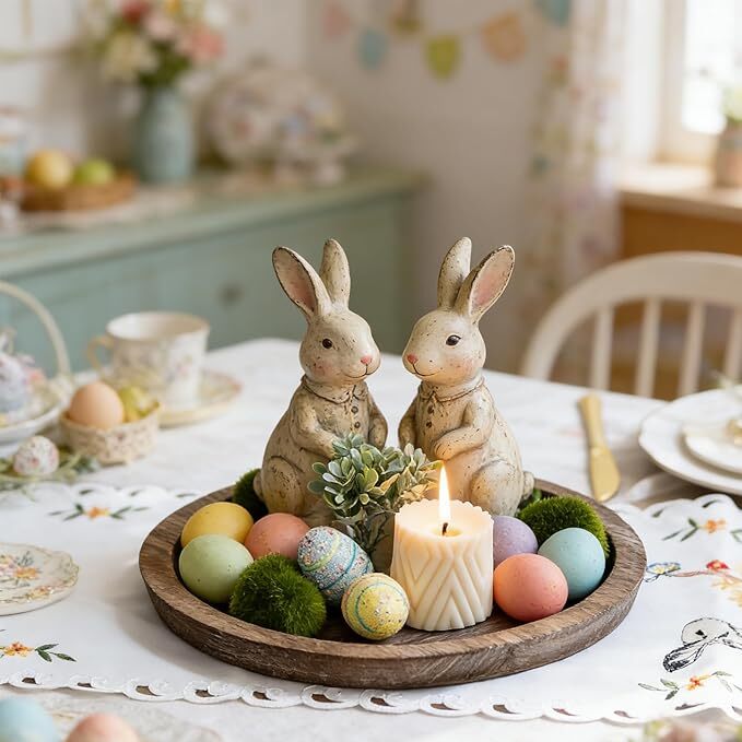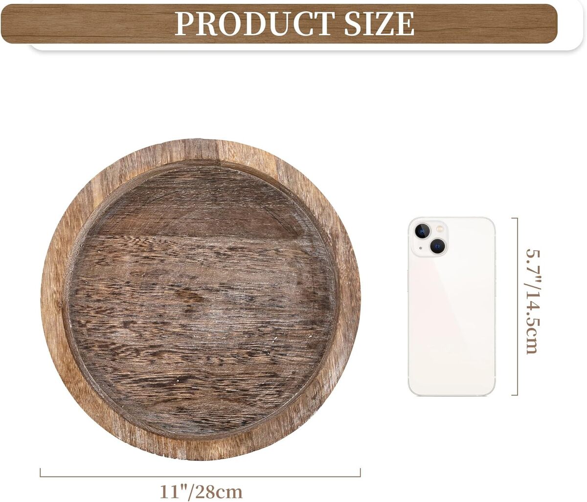 Round Wooden Candle Tray Rustic Farmhouse Decor for Home and Any Space