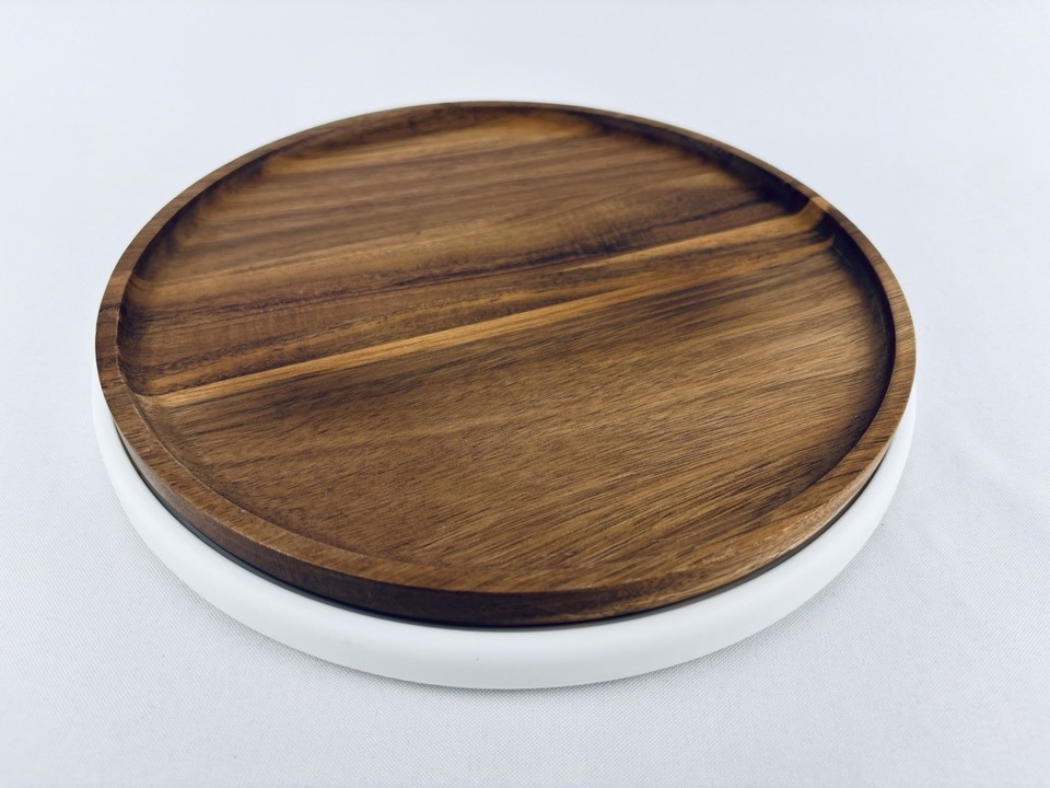 Rubbermaid Lazy Susan Turntable Spinner 10” White #230T W/Wood Piece MCM Decor