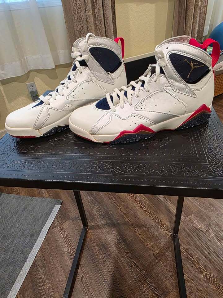 Brand new pair of Nike Olympic Air Jordan's size 9.5. Never worn. Got these when they first came out. Price ranges from $450 to $1700. Free shipping when list price is used. Negotiable prices do not include free shipping.
