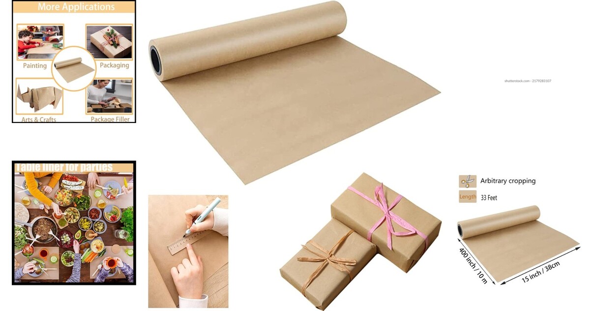 Multi-Use 15" x 394" Kraft Paper Roll - Wrapping, Crafts & Eco-Friendly Projects