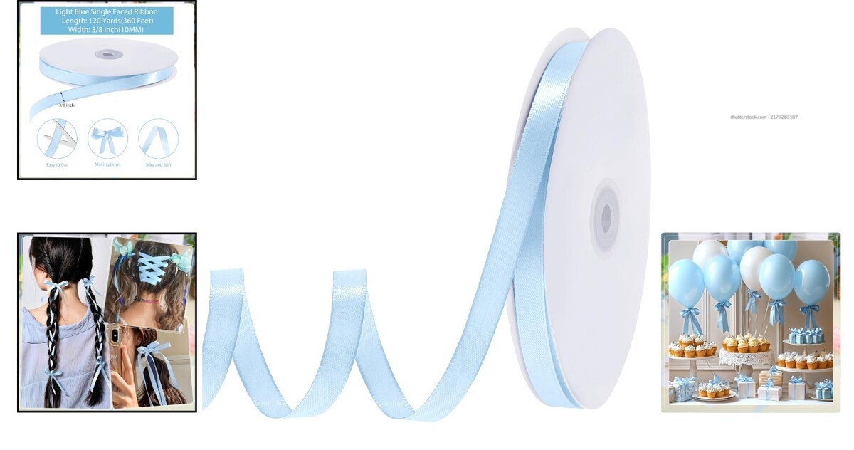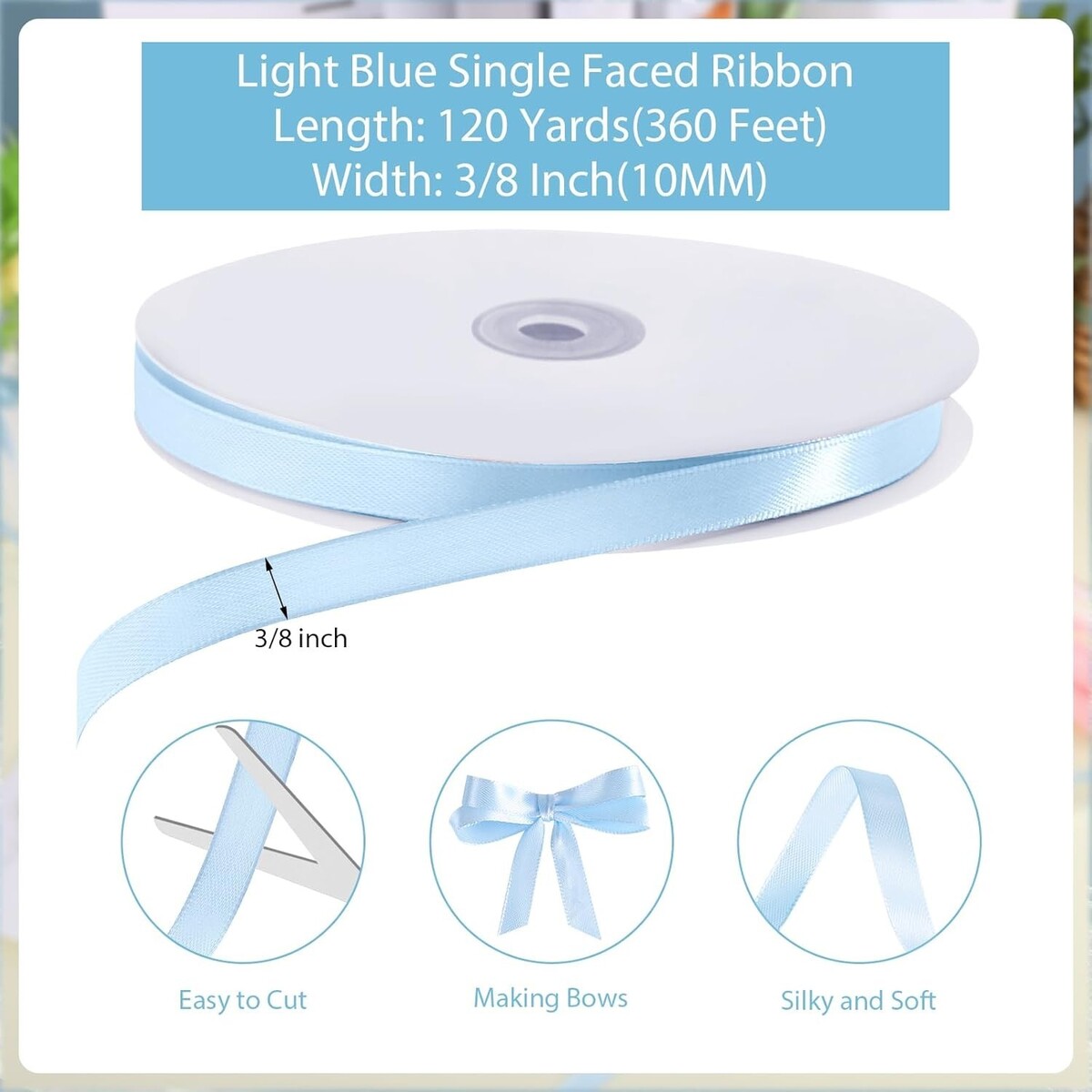 3/8 Inch Light Blue Satin Ribbon - 120 Yards for Elegant Gift Wrapping & Crafts